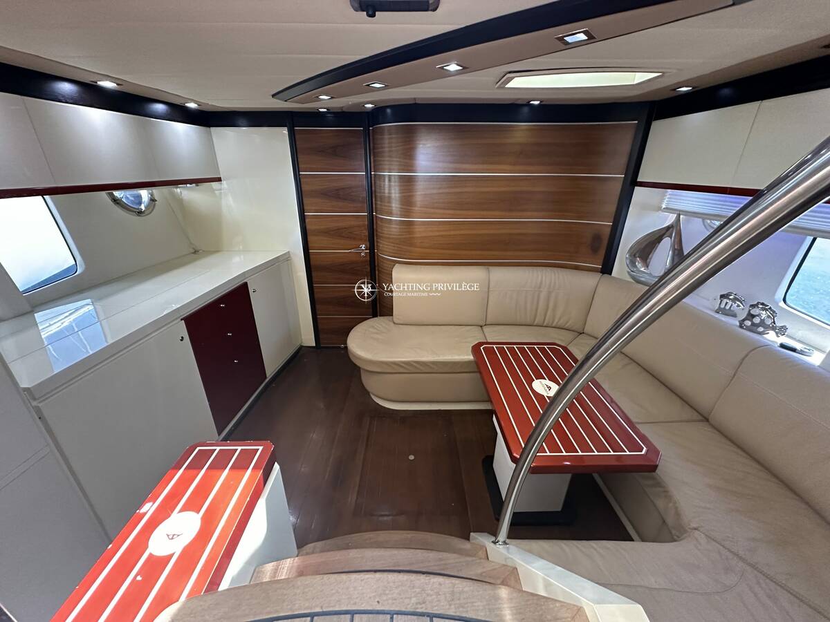 Gps sondeur traceur, pilote automatique, radar, générateur, climatisation réversible, 2 cabines, 2 salles de bain, carré transformable, bains de soleil avant et arrière, coffre à annexe, tauds d’été et d’hiver…