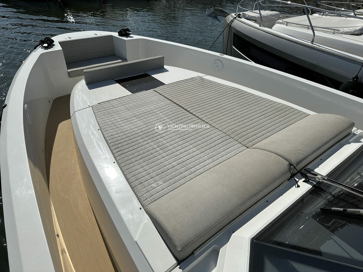Navire équipé d’une plate-forme de bain hydraulique, guindeau électrique, table de cockpit hydraulique, cuisine extérieur, bain de soleil avant et arrière, groupe électrogène, centrale de navigation, GPS/Sondeur/Traceur, pilote automatique, climatisation…