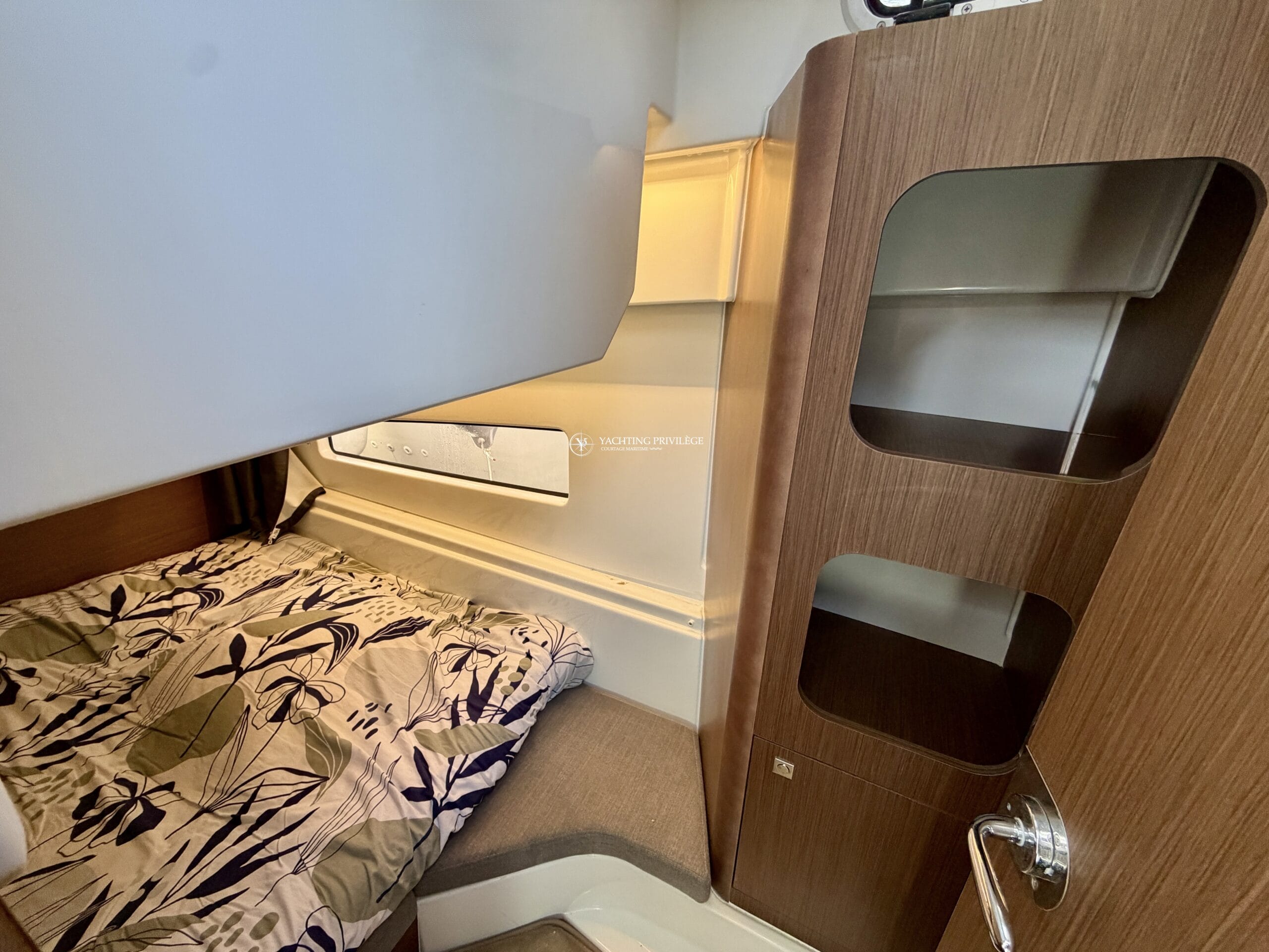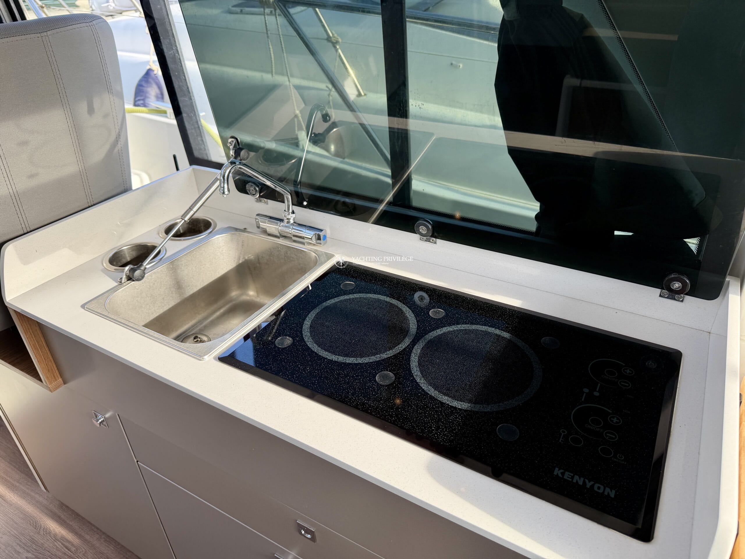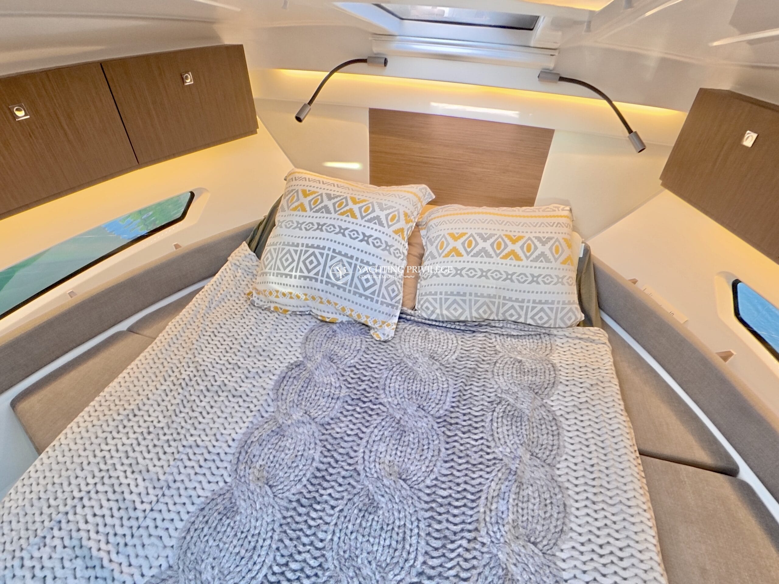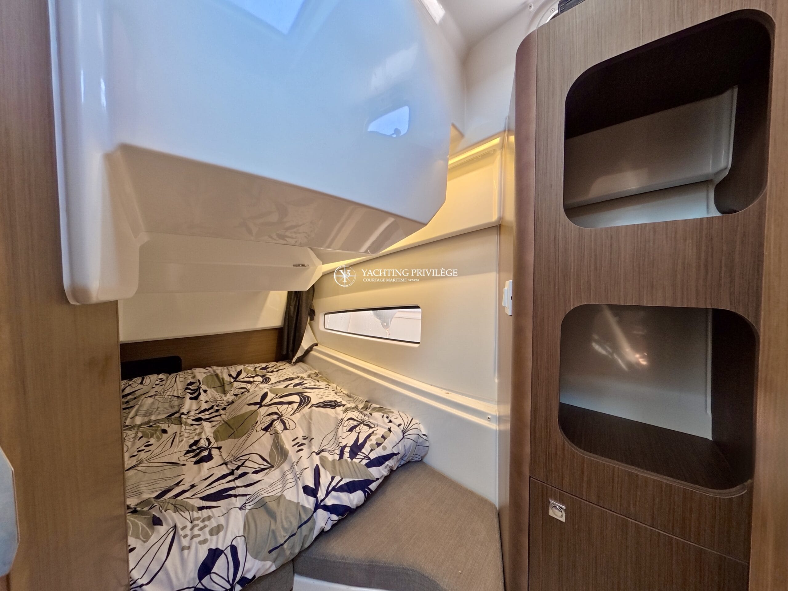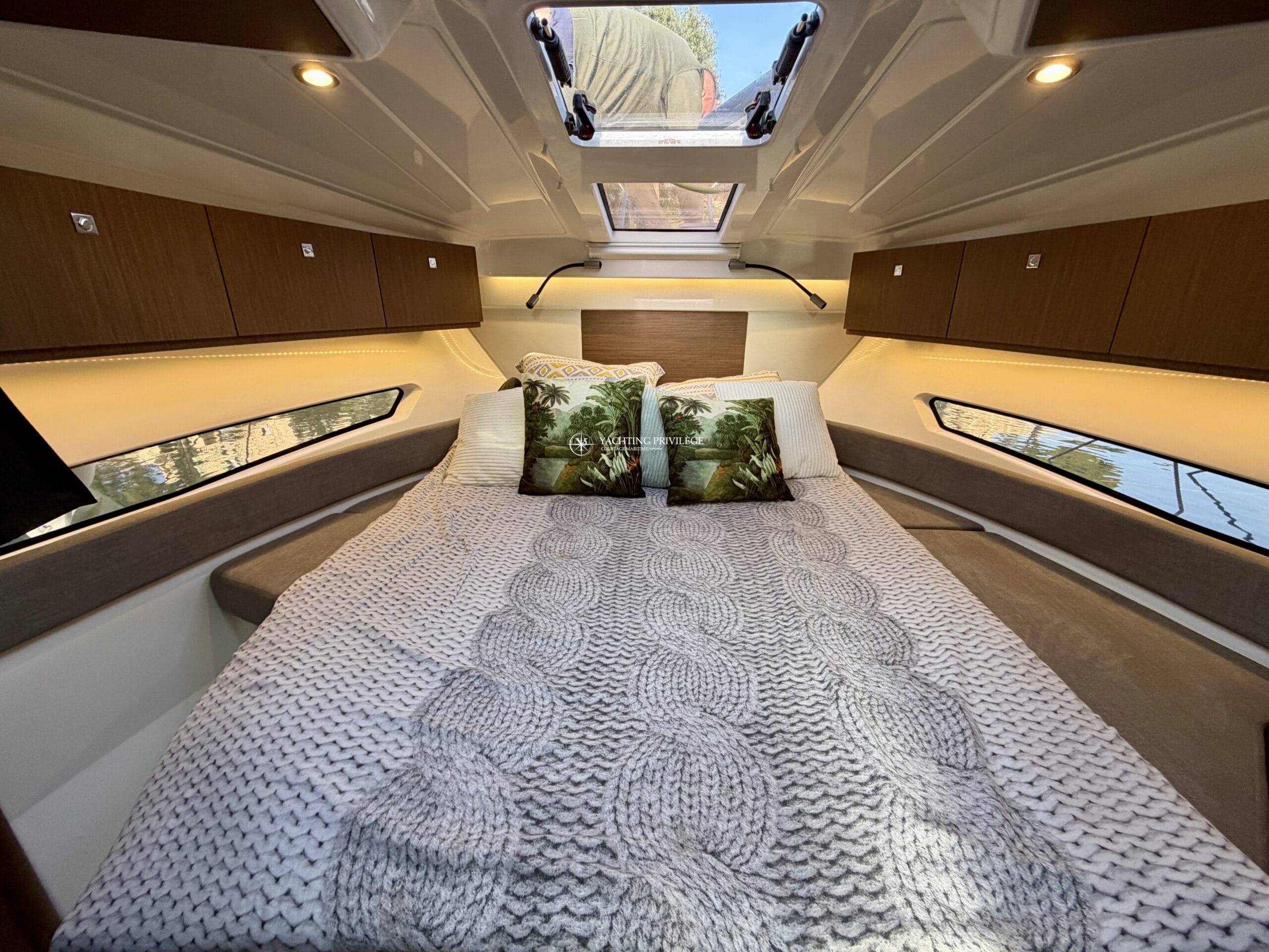 Côté électronique, le navire est équipé d’une VHF Garmin 215i, GPS / sondeur / traceur Garmin Echomap 9", loch-speedomètre, Zipwake…