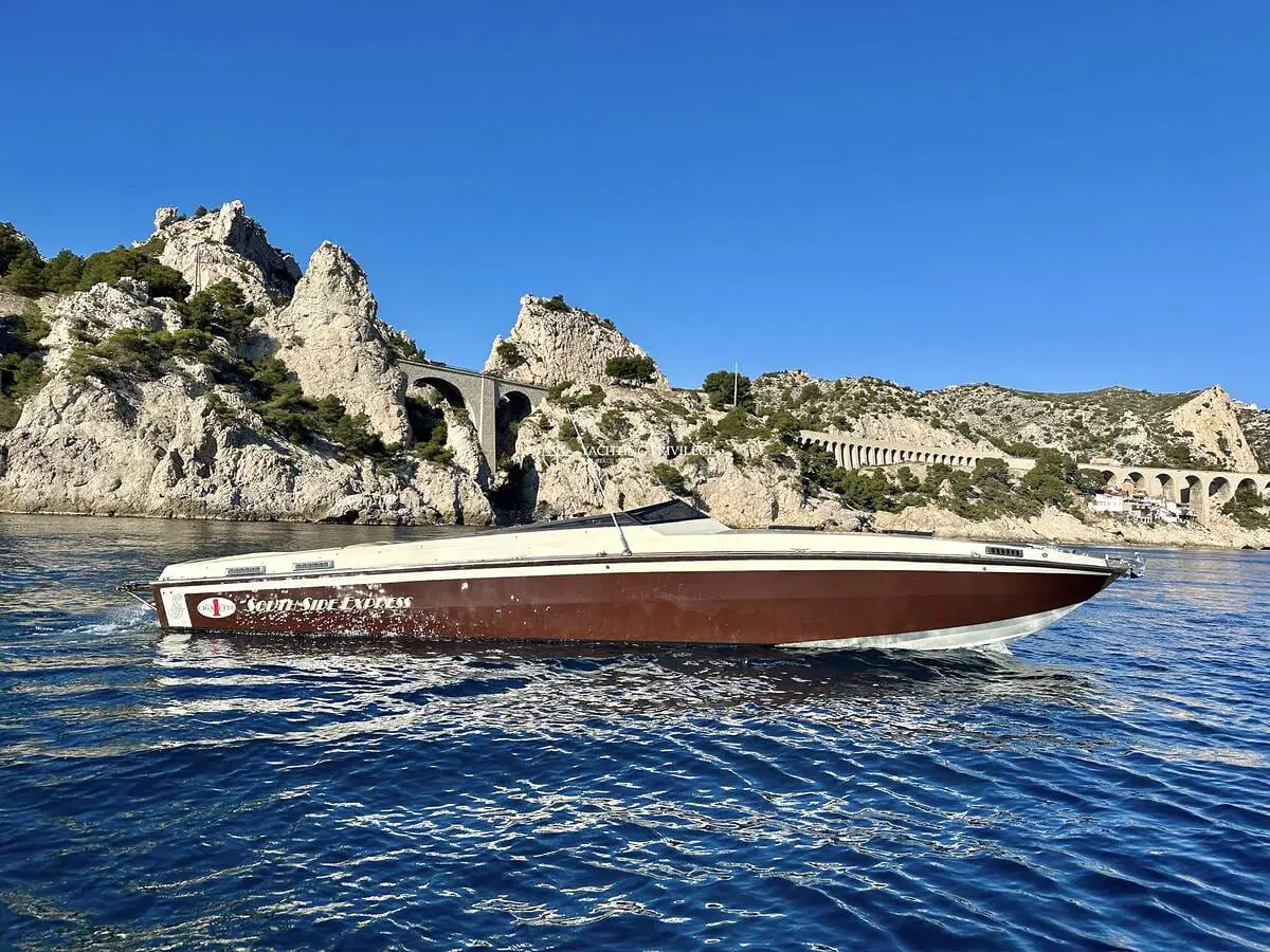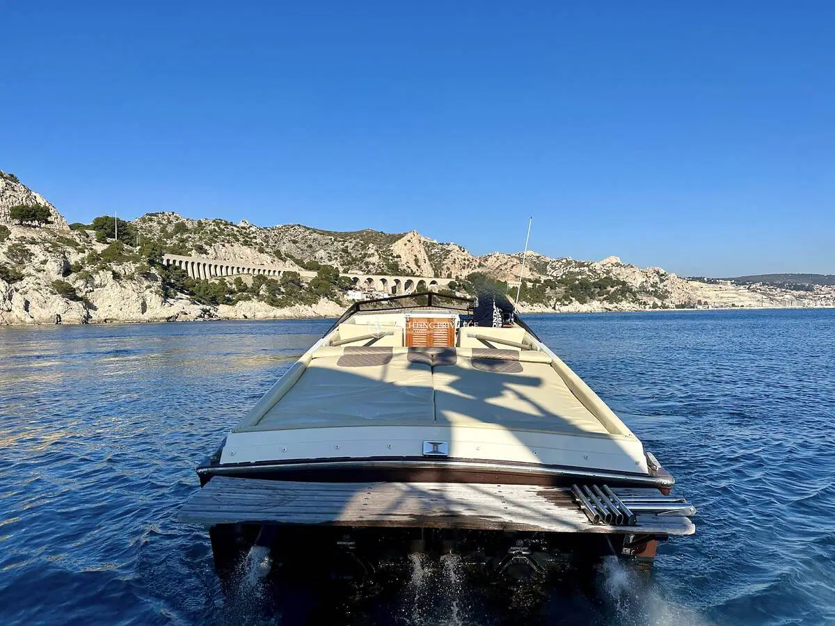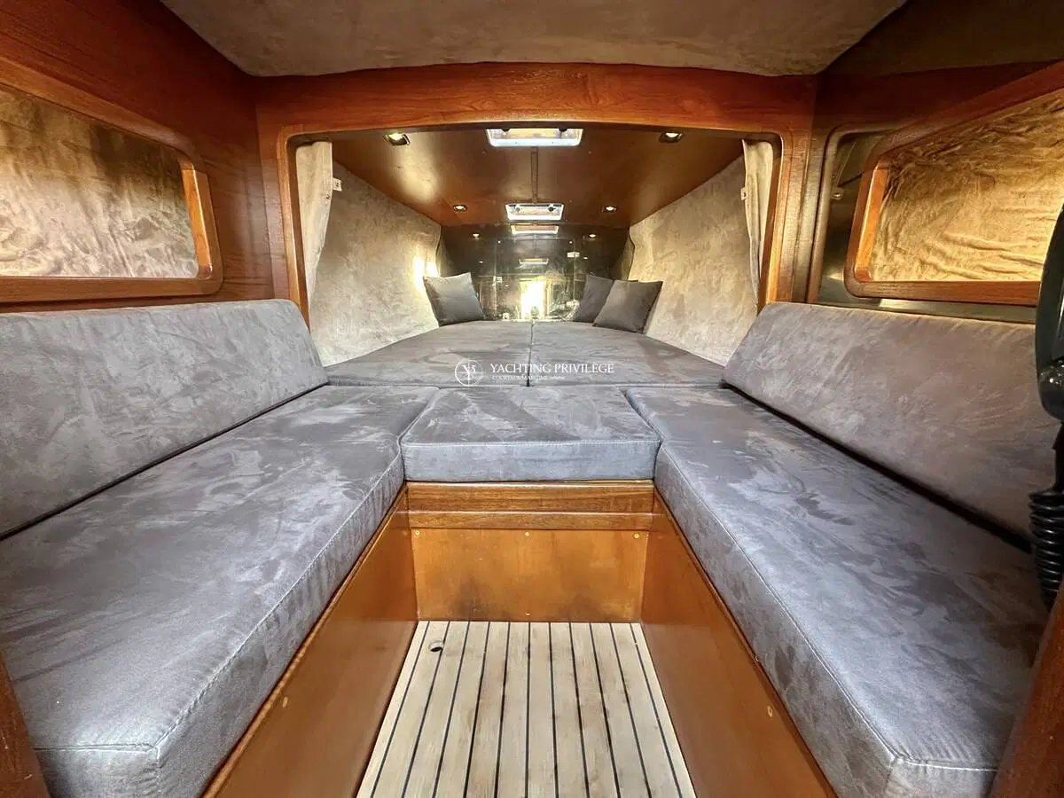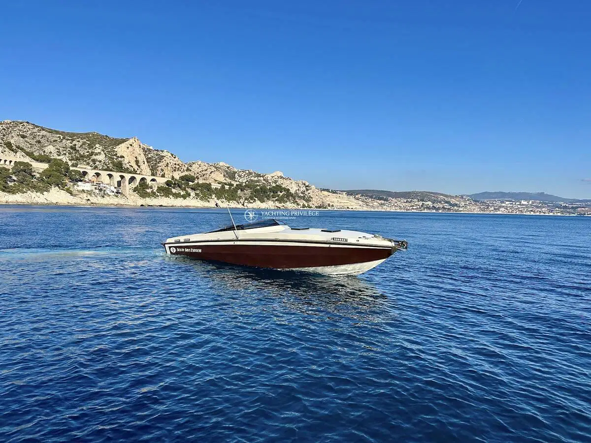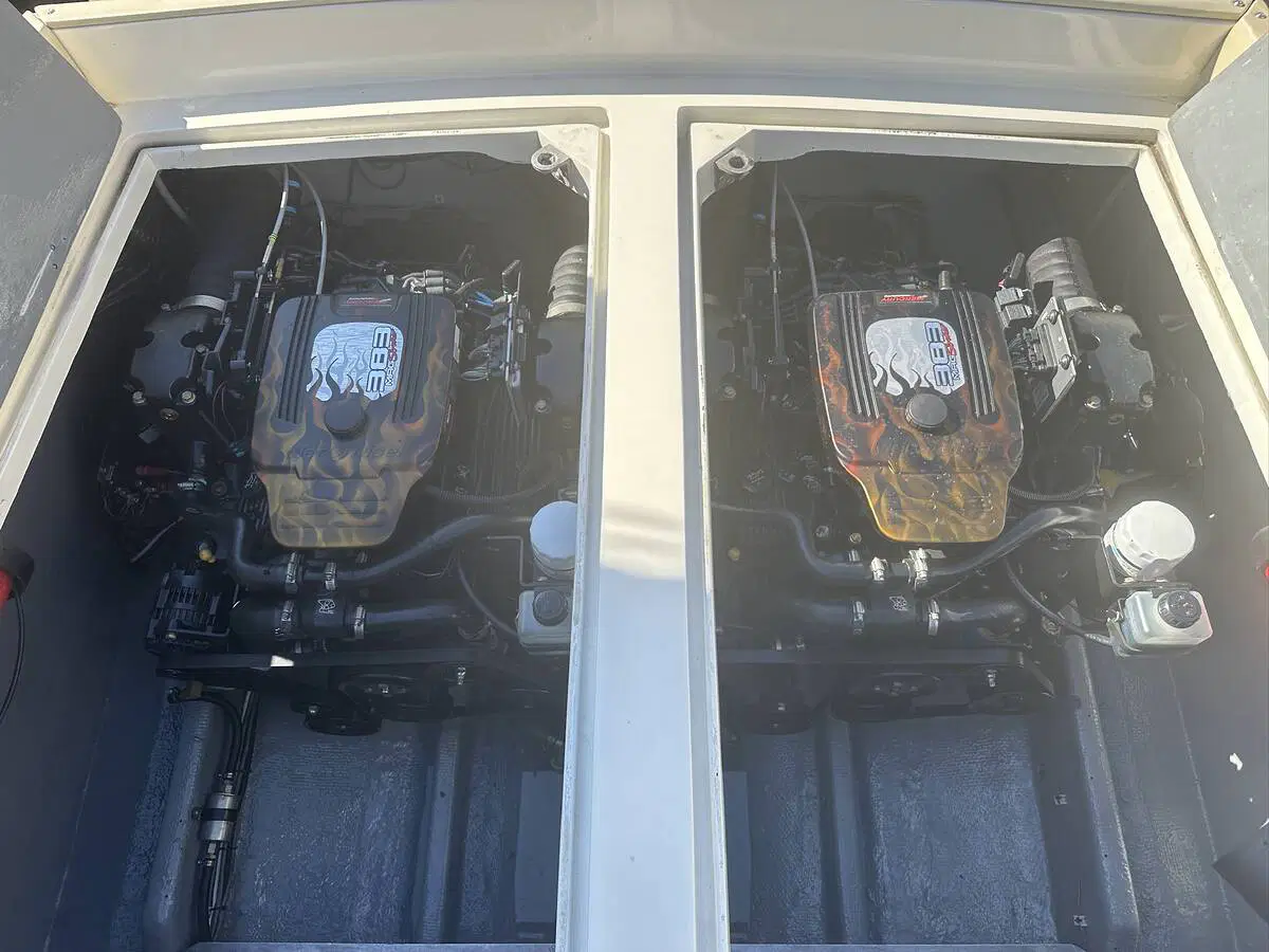 Gigarette 35 de 1978, entièrement refitée en 2022, esthétique et mécanique remplacée à neuf (factures à l’appui). Motorisation Mercruiser 6.2L échappements libres, 2x350cv, totalisant 145h de navigation.