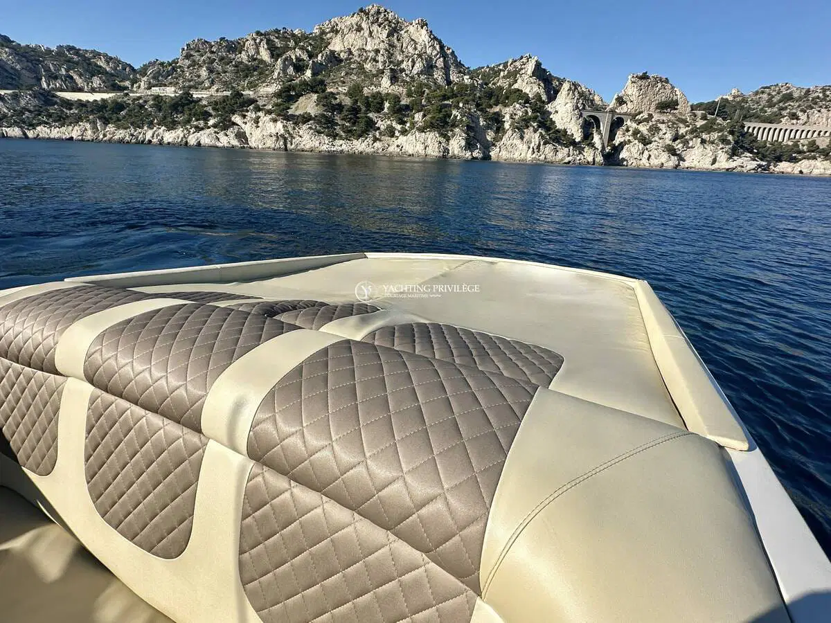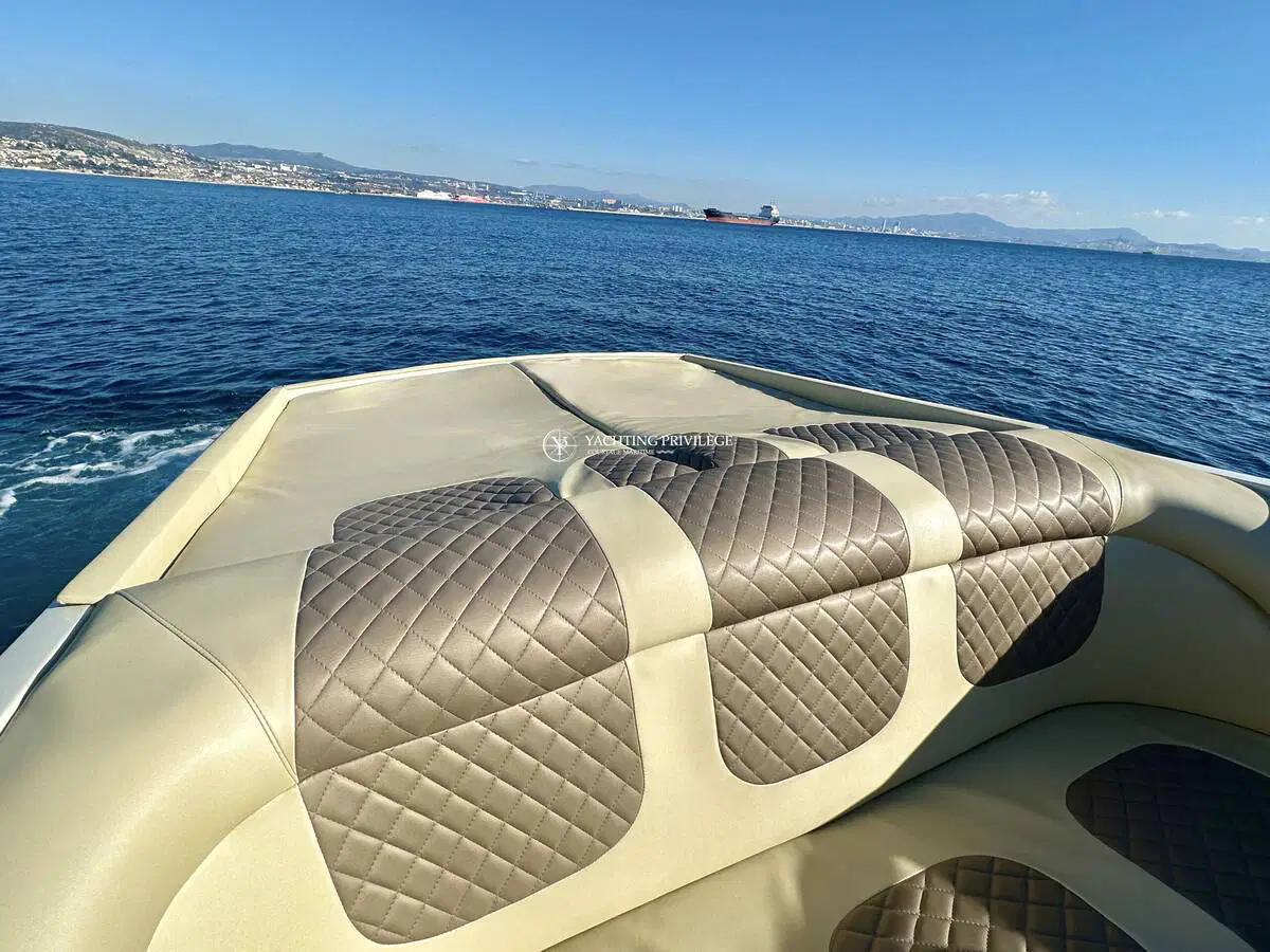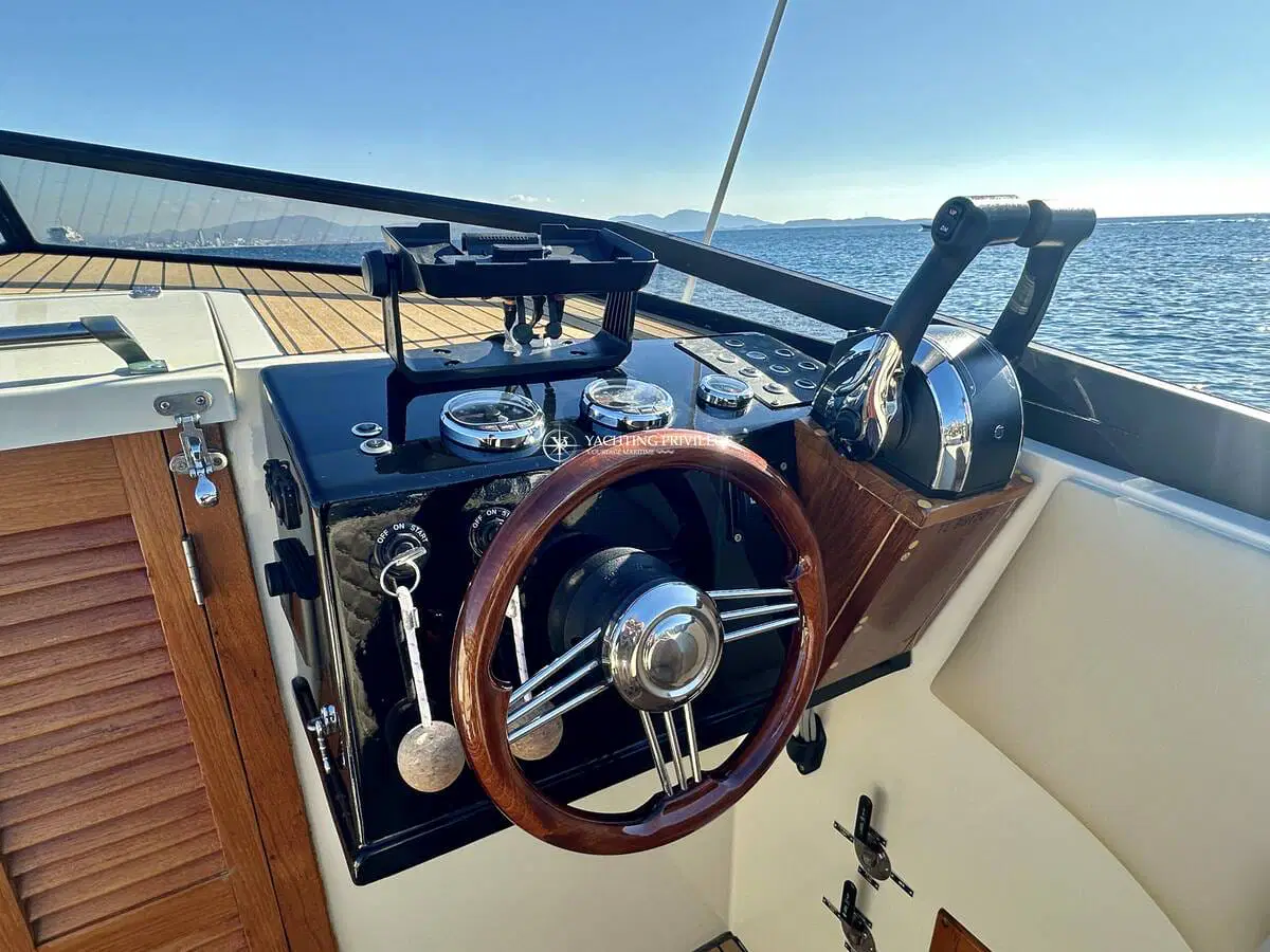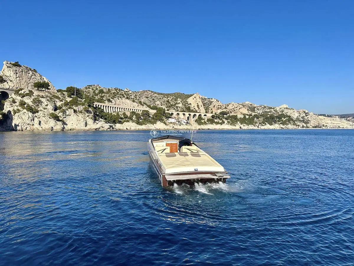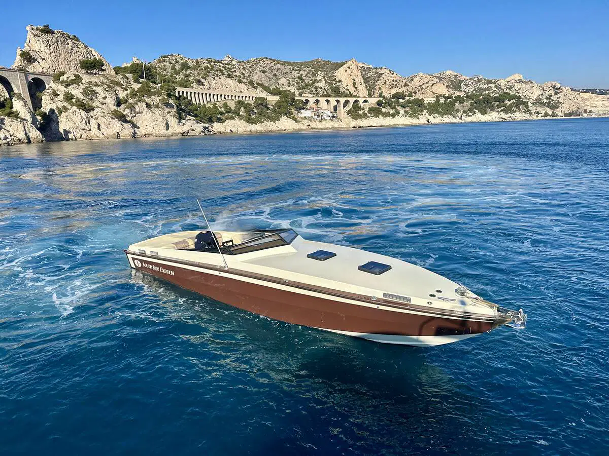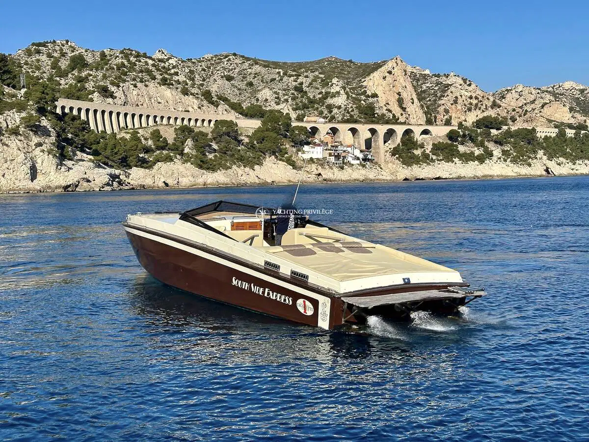 Gigarette 35 de 1978, entièrement refitée en 2022, esthétique et mécanique remplacée à neuf (factures à l’appui). Motorisation Mercruiser 6.2L échappements libres, 2x350cv, totalisant 145h de navigation.