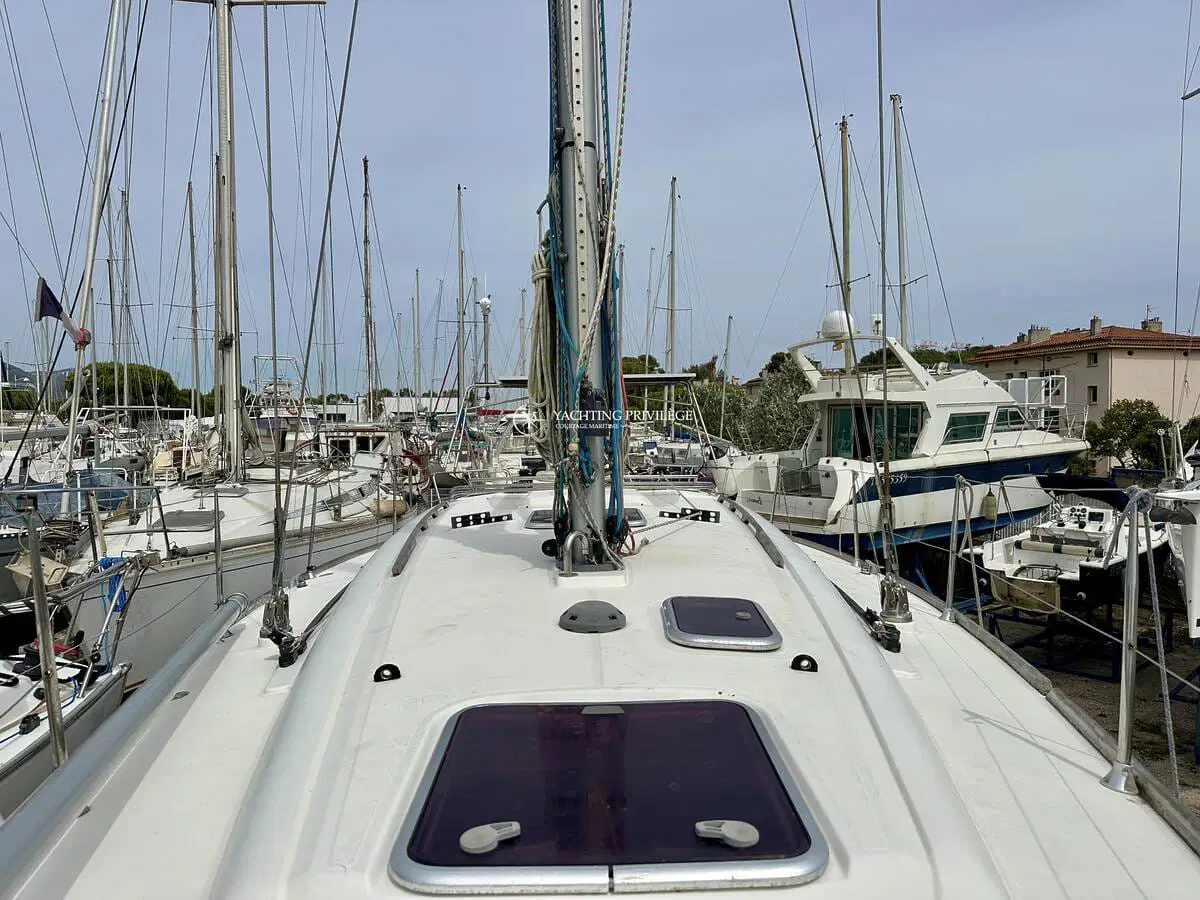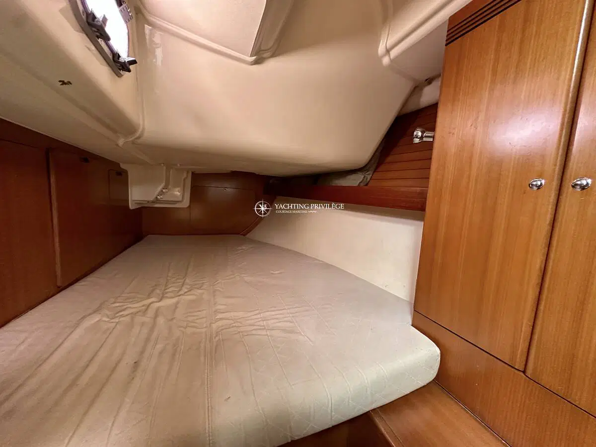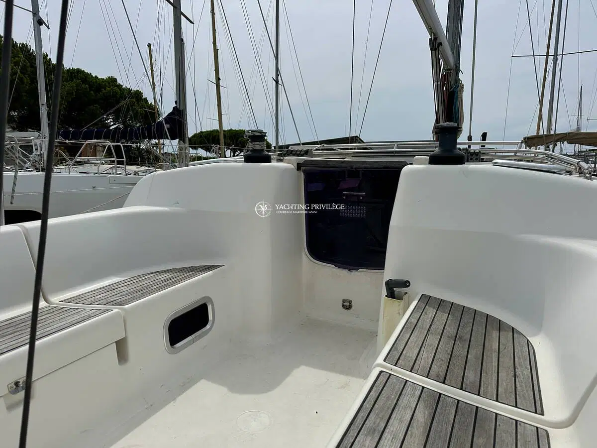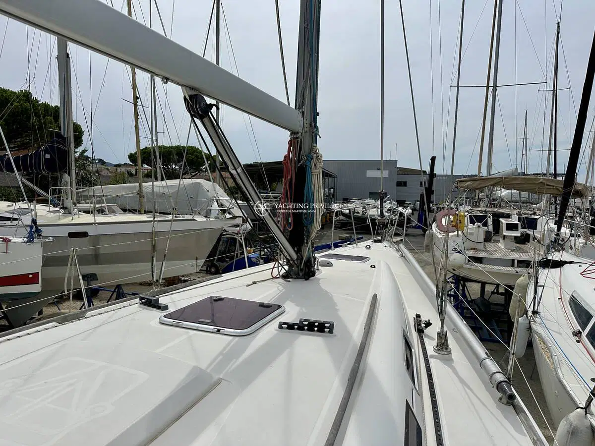 Côté voilure, le bateau dispose d’une grand-voile full batten, d’un génois sur enrouleur, d’un solent et d’un spinnaker, permettant de s’adapter à toutes les conditions de navigation.