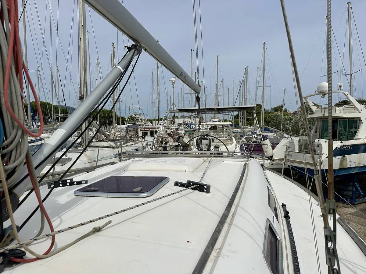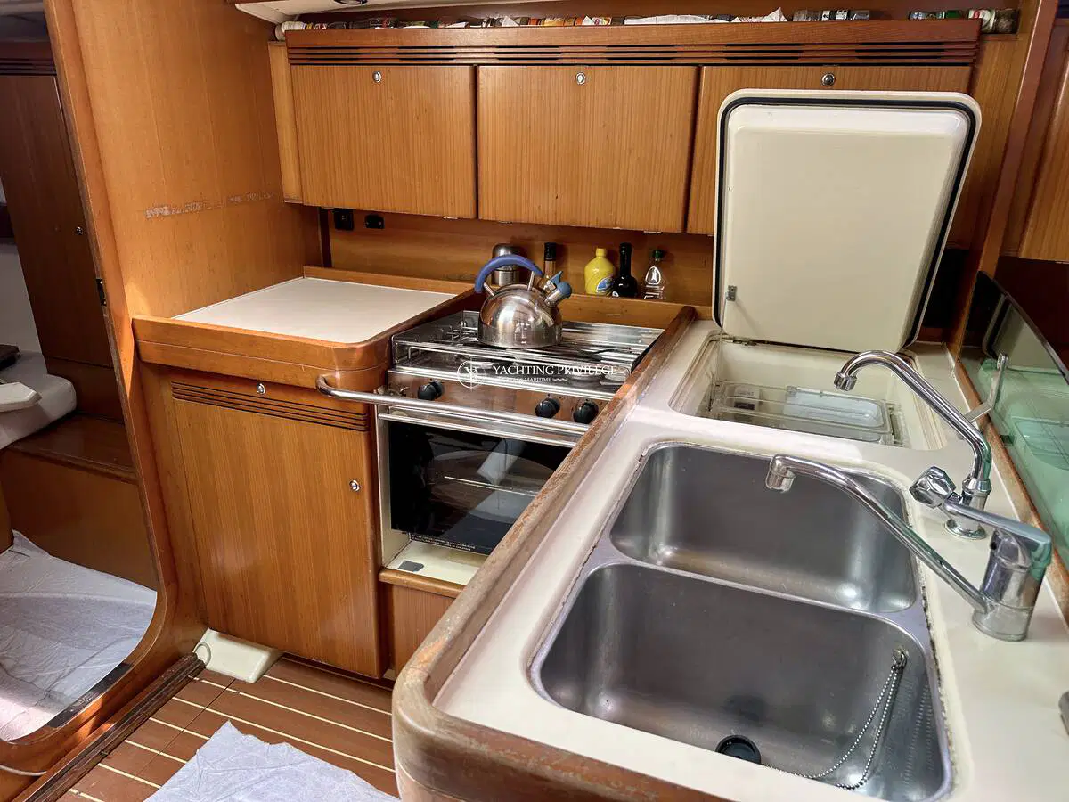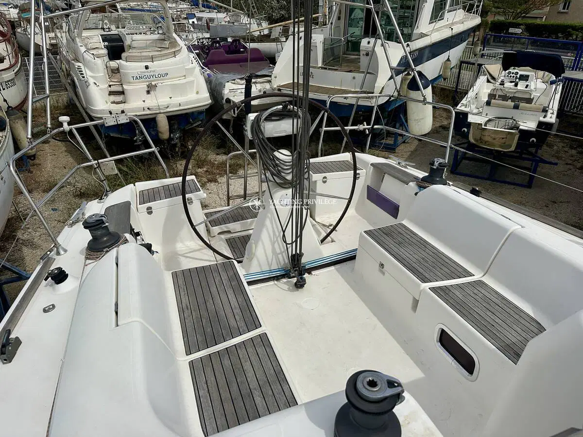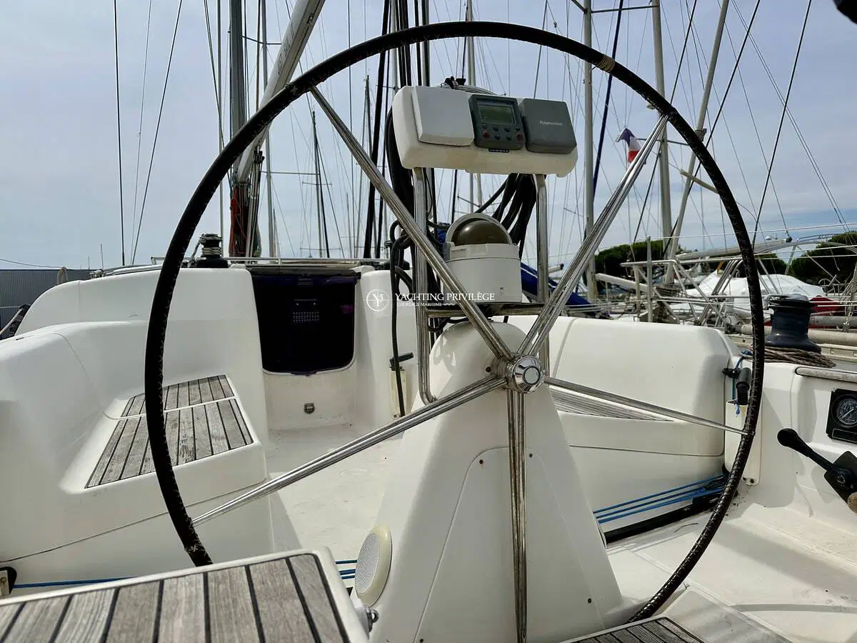 Côté voilure, le bateau dispose d’une grand-voile full batten, d’un génois sur enrouleur, d’un solent et d’un spinnaker, permettant de s’adapter à toutes les conditions de navigation.