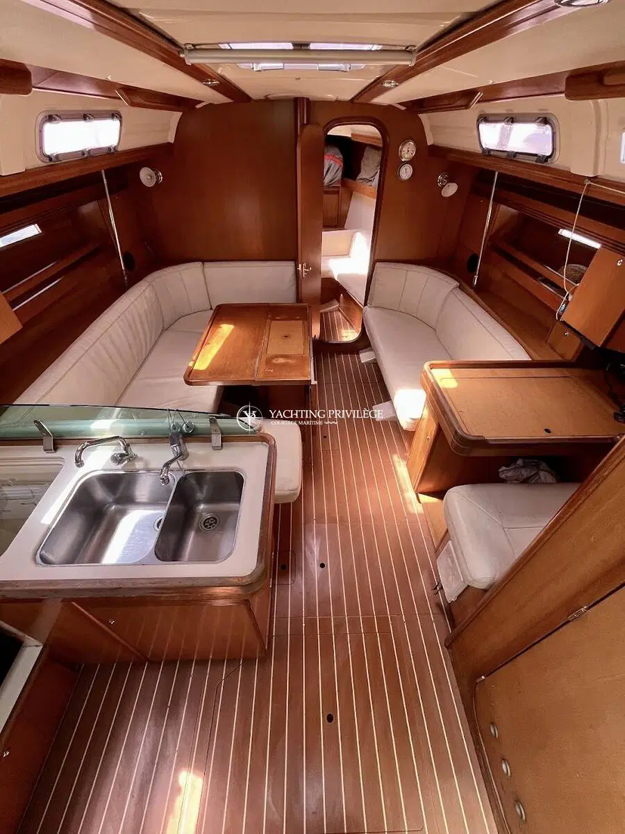 L’intérieur offre trois cabines doubles confortables ainsi qu’un carré transformable, pour un total de huit couchages. Le carré est spacieux, lumineux et doté de nombreux rangements, idéal pour les croisières en famille ou entre amis.