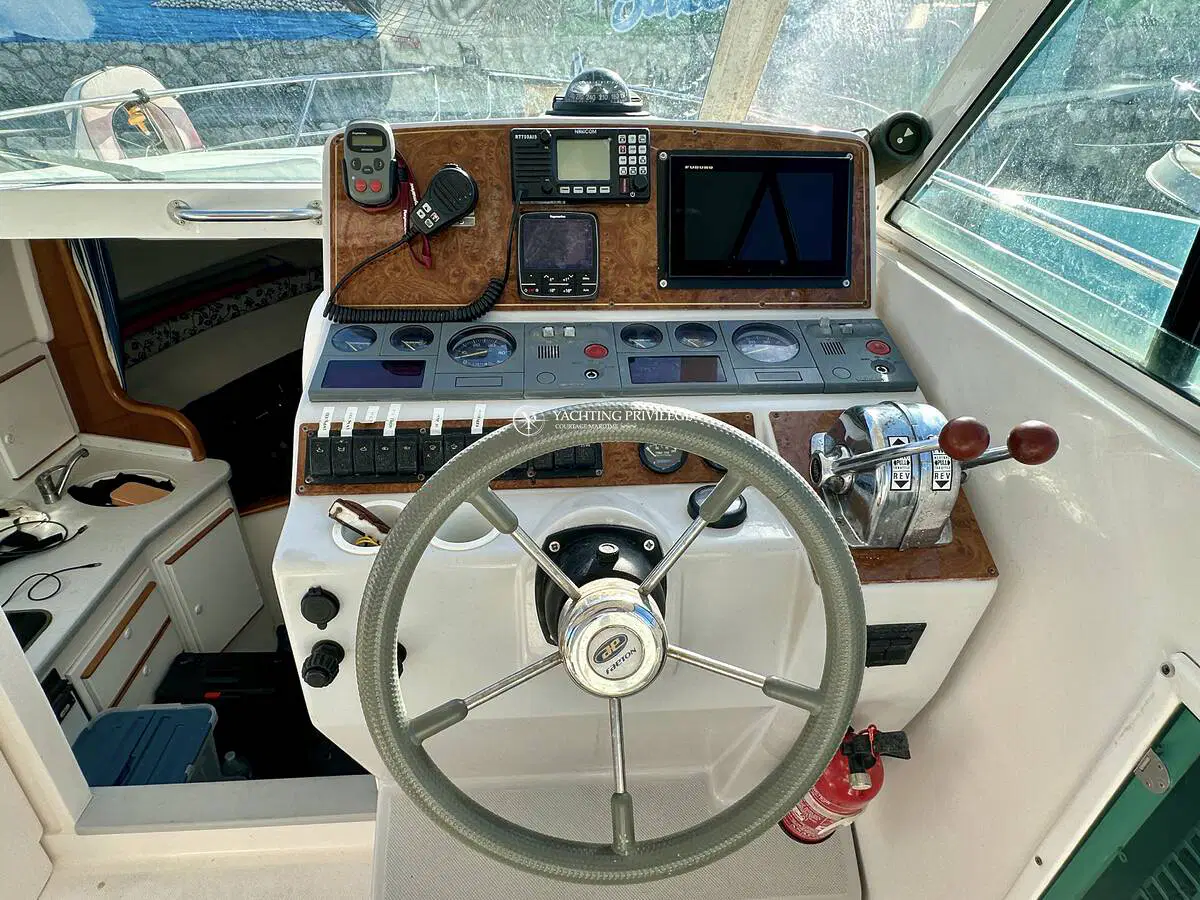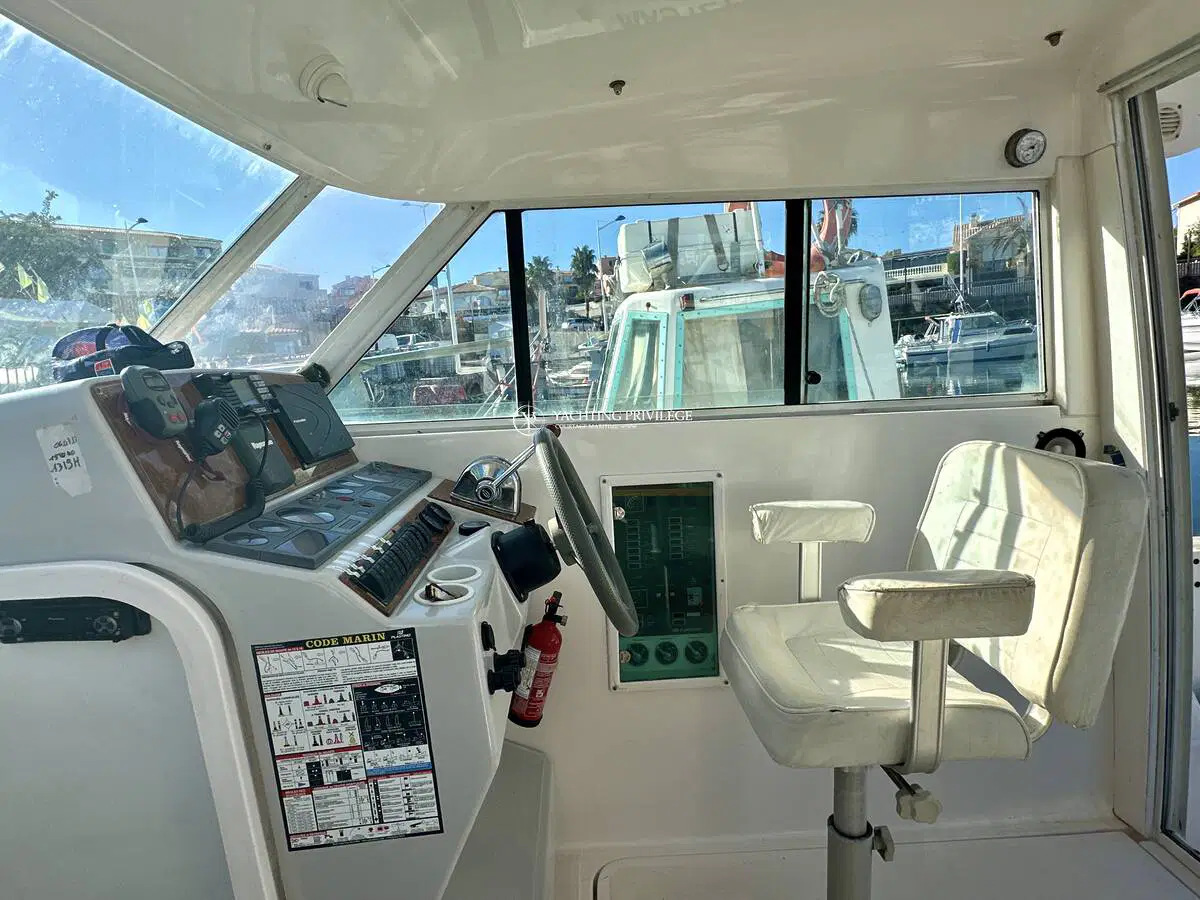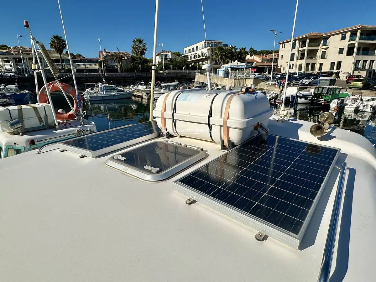 Côté équipements, le bateau est doté d’un GPS traceur, VHF, pilote automatique, sondeur, guindeau électrique, prise de quai et batteries. Sa capacité de carburant est de 700 L et celle d’eau douce de 100 L, offrant une autonomie confortable.