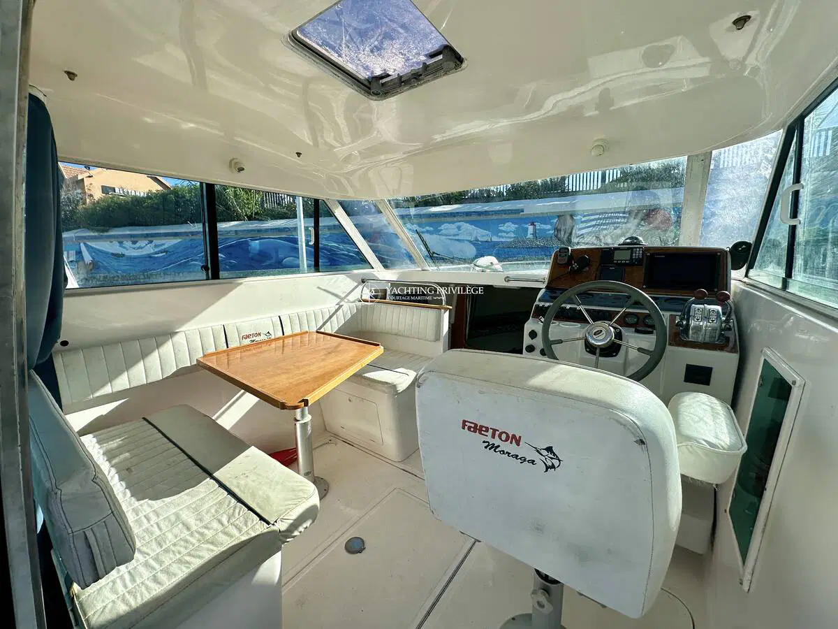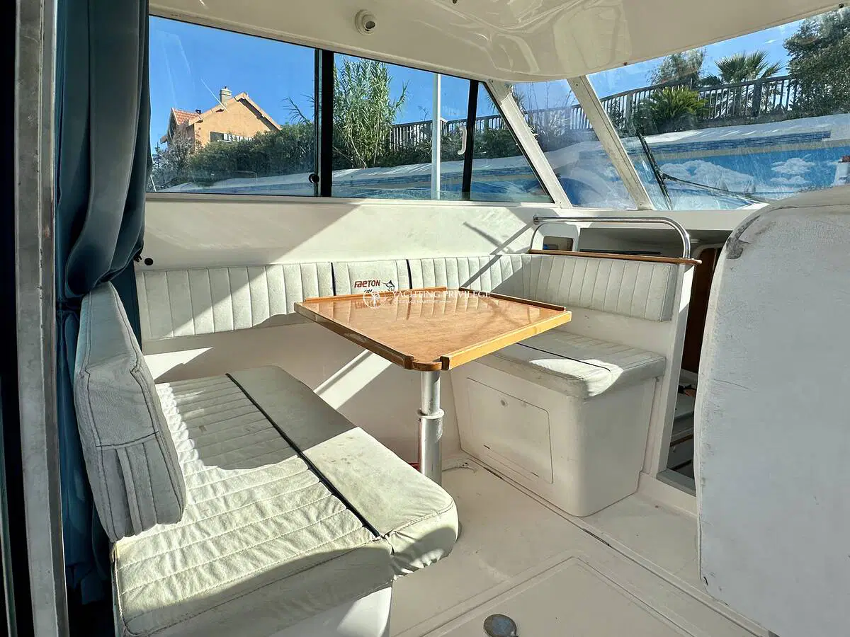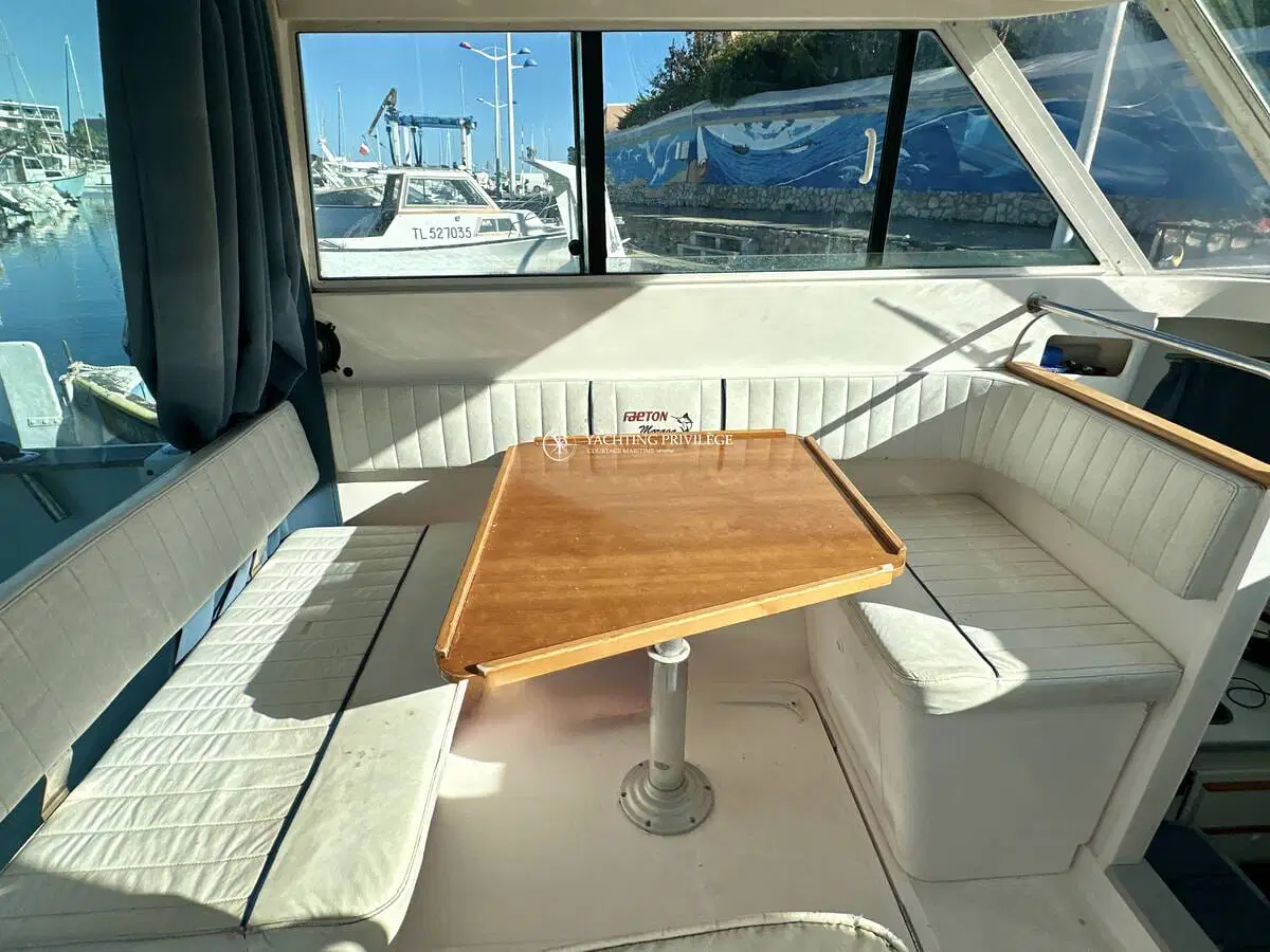 Il dispose d’une cabine avec couchage double, d’une cuisine équipée (réfrigérateur, cuisinière) ainsi que d’une salle d’eau avec WC et douche. Le carré lumineux et panoramique offre une belle habitabilité, complété par un grand cockpit et une vaste plateforme de bain elle même équipée d’une chaise de combat.