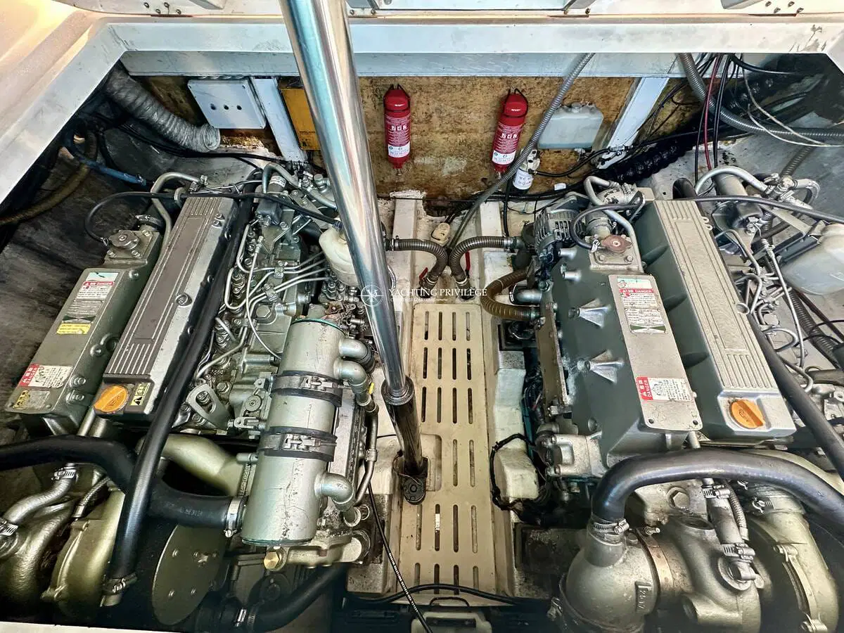 Faeton 910 Moraga de 2003, équipé de deux moteurs Yanmar Diesel de 200 CV ligne d’arbre, totalisant environ 2200h de navigation