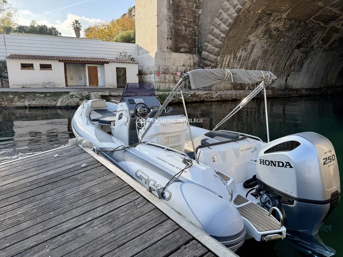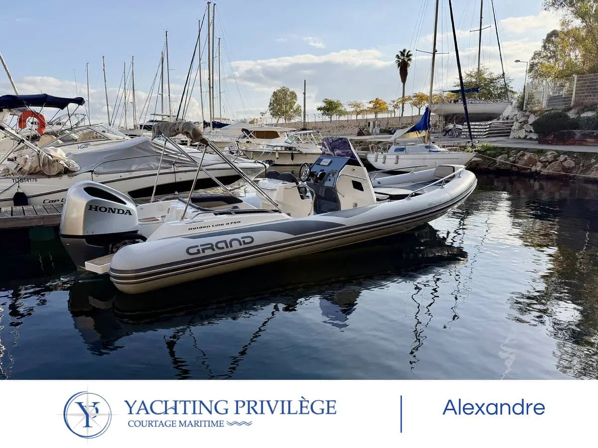 Grand Golden Line G 750 de 2020, mis à l’eau en 2021, motorisation Honda BF250cv, totalisant 690h de navigation.