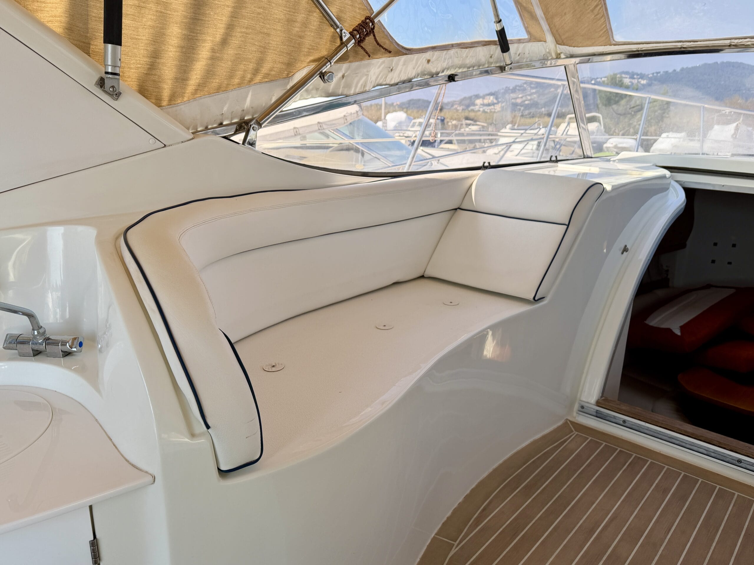 Mira 34 de 2005 , élégant cruiser italien du chantier Innovazione e Progetti, reconnu pour la qualité de fabrication et le confort de ses unités.