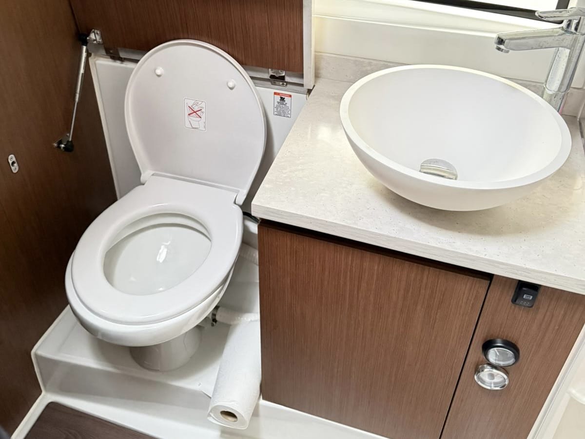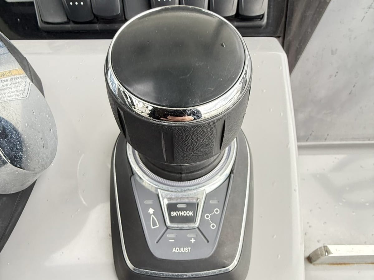 L’électronique et les équipements de pilotage sont complets et modernes : double écran GPS / sondeur Garmin, VHF, joystick de manœuvre, ancre virtuelle, direction électrique, flaps, guindeau électrique, convertisseur 220 V...