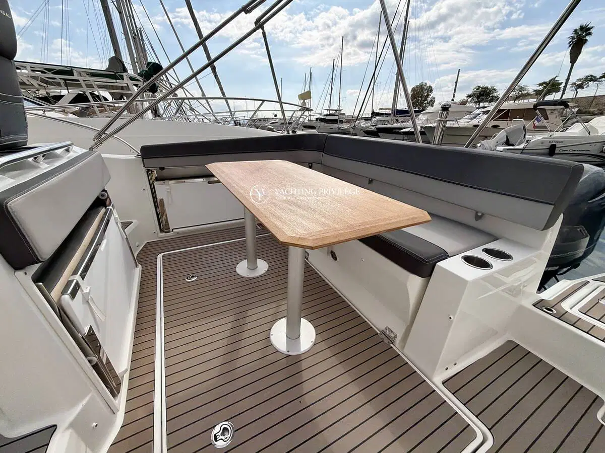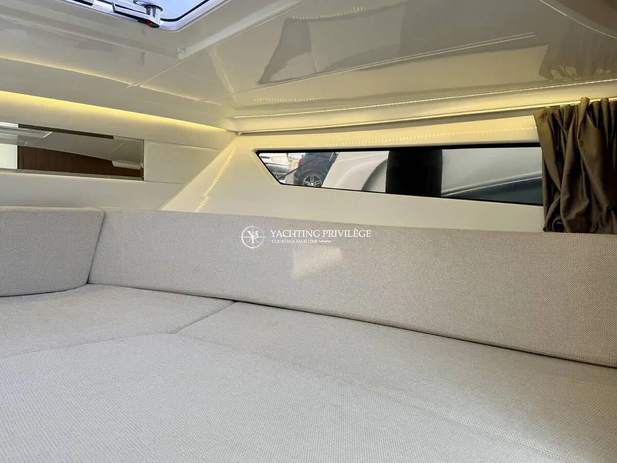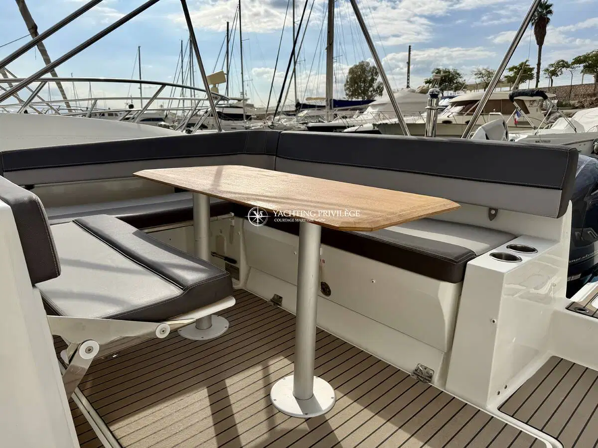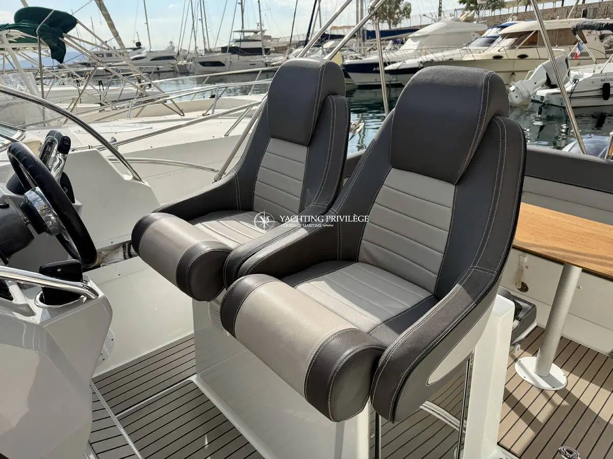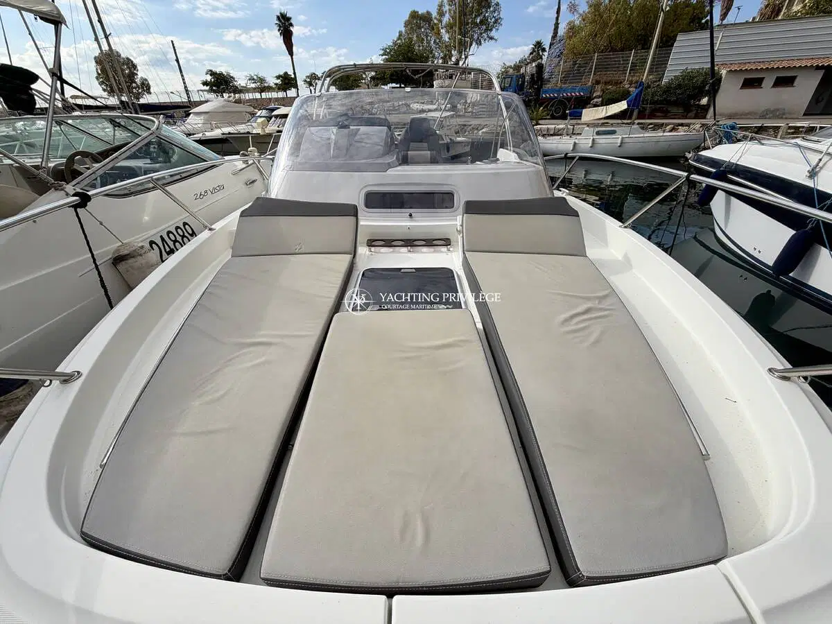 Ce modèle phare de la gamme Cap Camarat offre un équilibre réussi entre confort, habitabilité et plaisir de navigation. Les volumes extérieurs sont bien pensés, avec un grand bain de soleil avant, un cockpit modulable accueillant et convivial, ainsi que des plateformes de bain arrière facilitant l’accès à la mer.