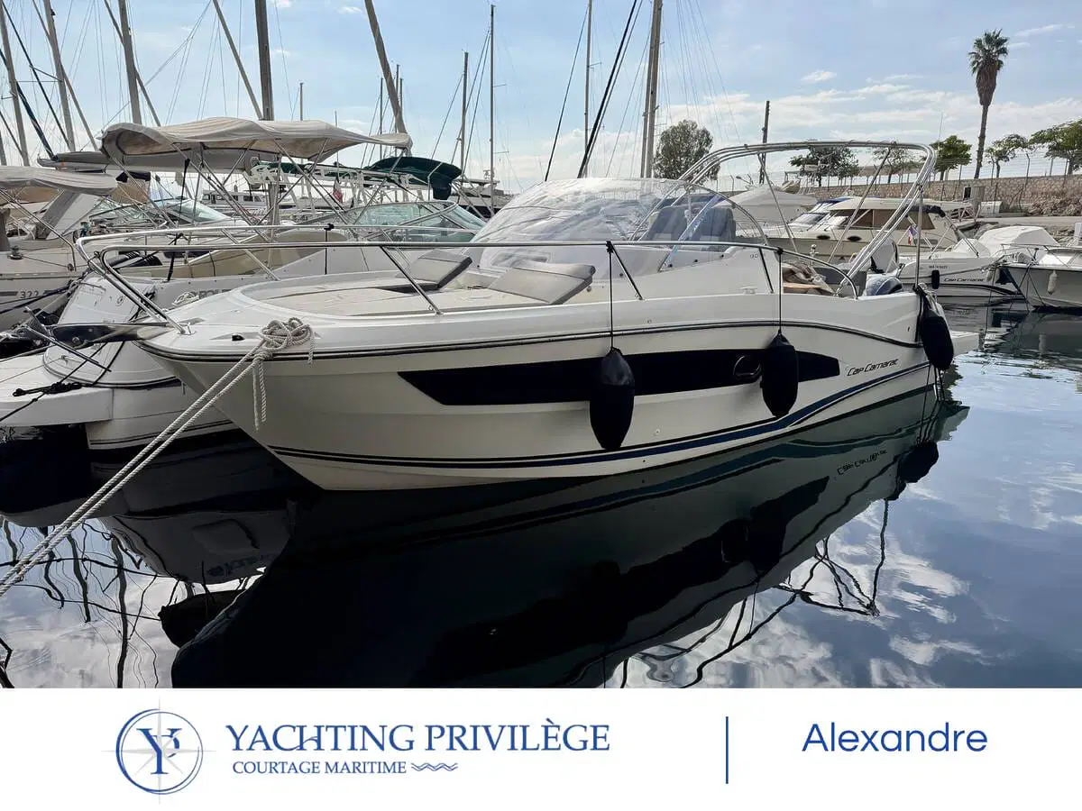 Jeanneau Cap Camarat 9.0 WA mis en circulation en 2019, propulsé par une motorisation Yamaha 2 x 200 cv totalisant environ 310 heures de navigation. Ce bateau se présente en très bon état général et est prêt à prendre la mer.