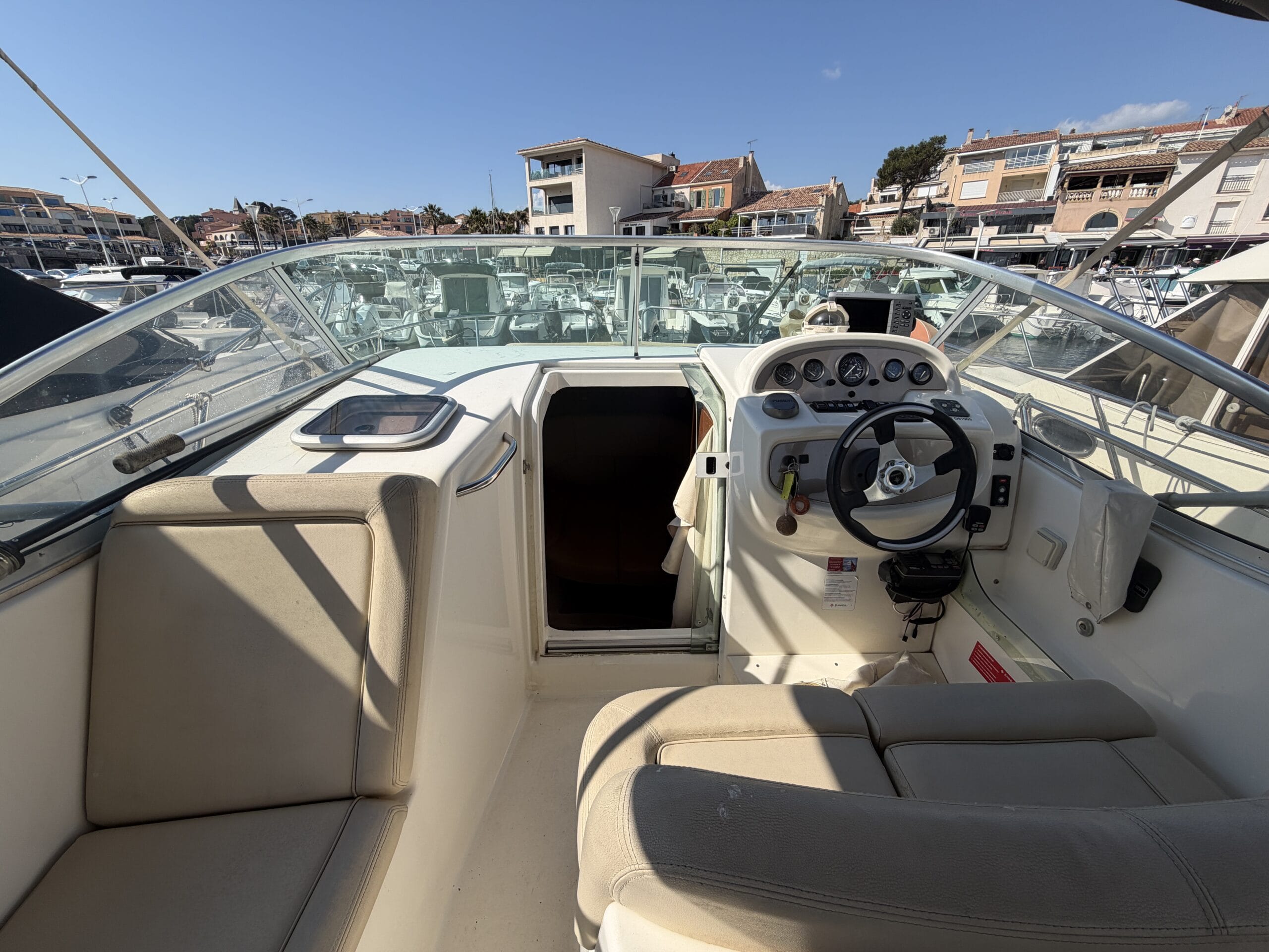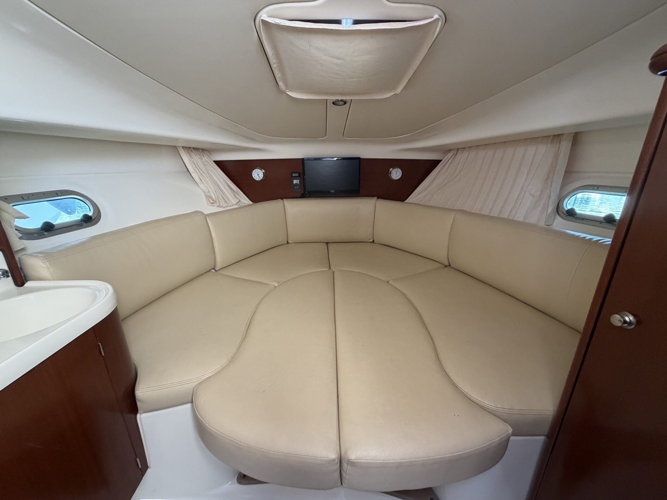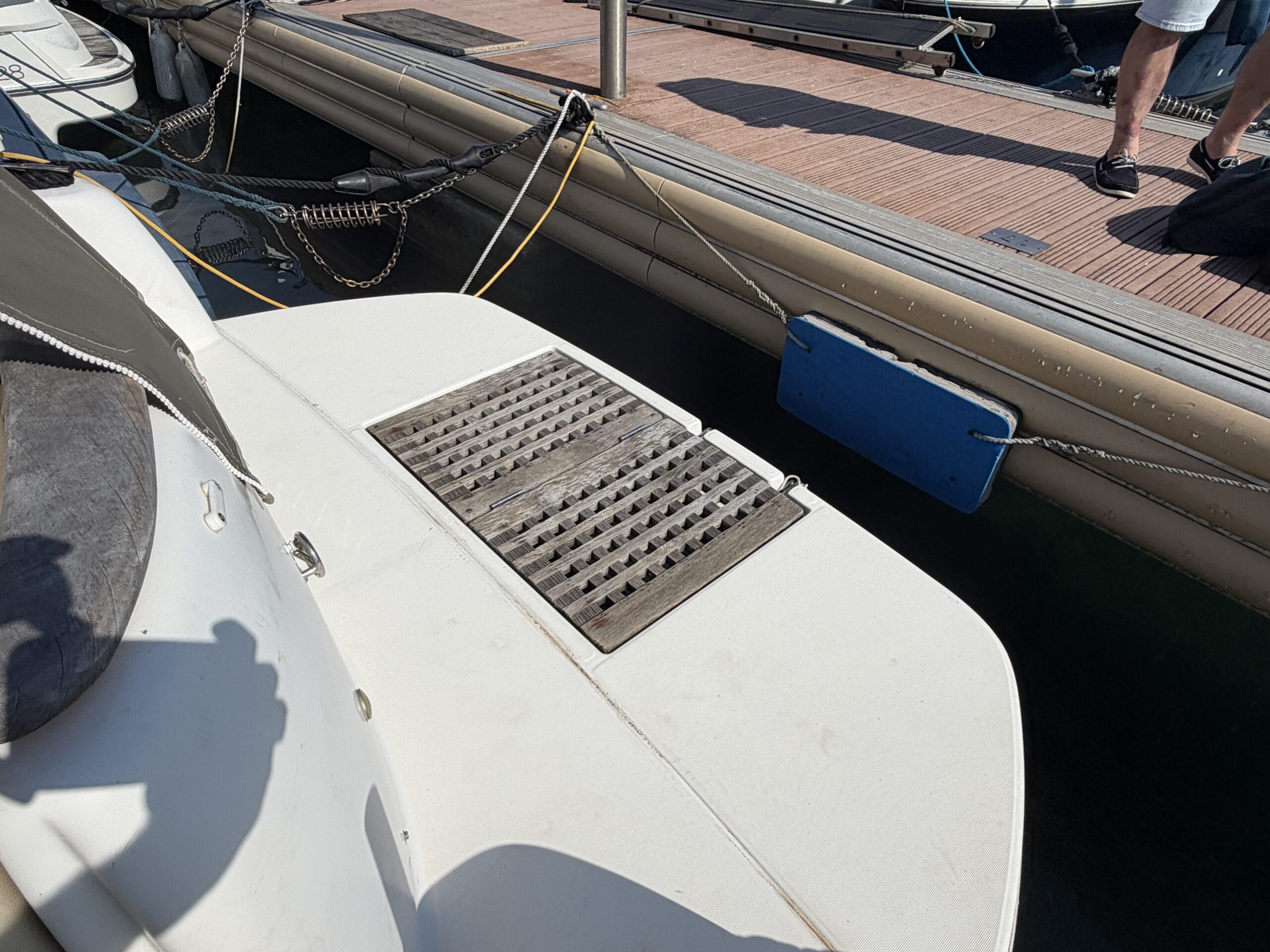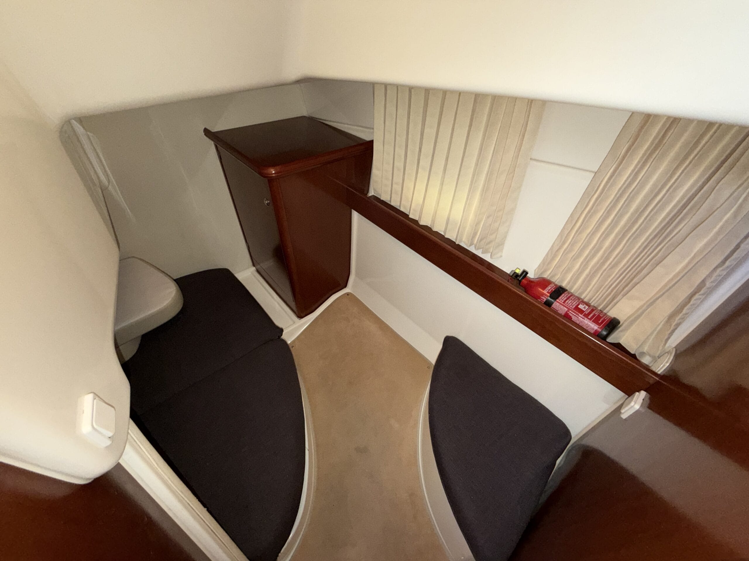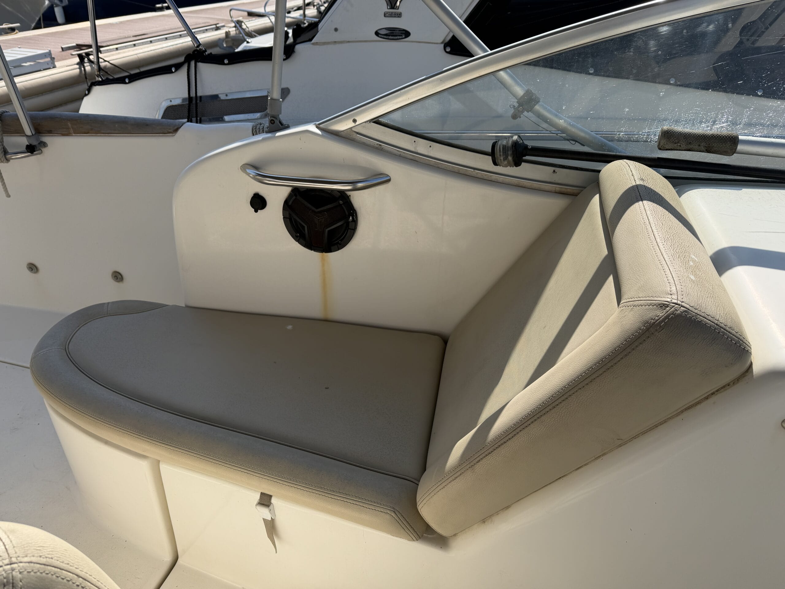 Le bateau dispose de bains de soleil à l’avant et à l’arrière. Il est également équipé d’un bimini et d’un taud de camping, actuellement en état d’usage et qui nécessiteraient d’être refaits. Les selleries de cockpit sont en état moyen.