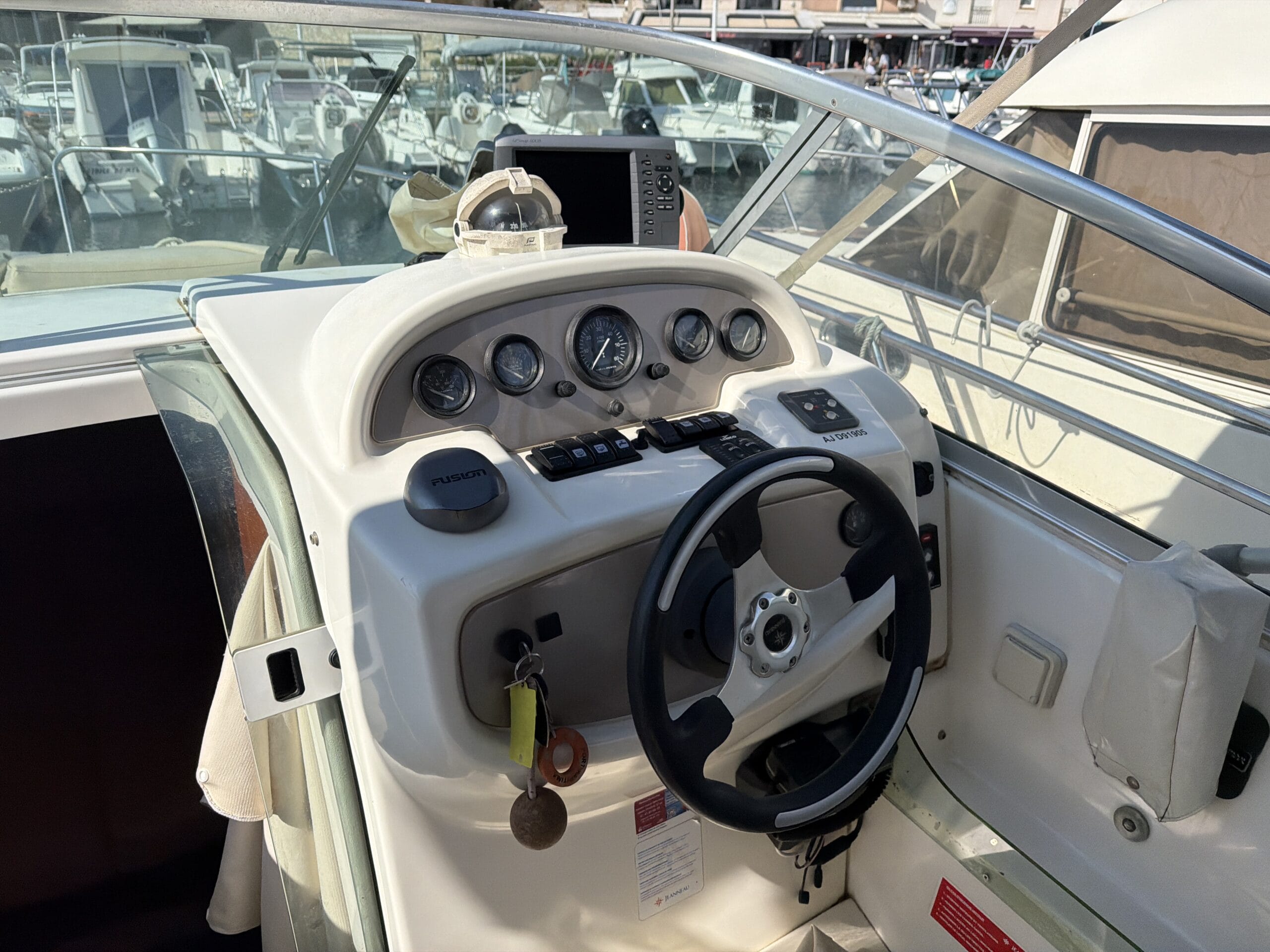 Côté électronique, le bateau dispose d’un GPS / sondeur Garmin d’une radio VHF, ainsi que d'un lecteur CD/radio avec 2 hauts parleurs extérieur.