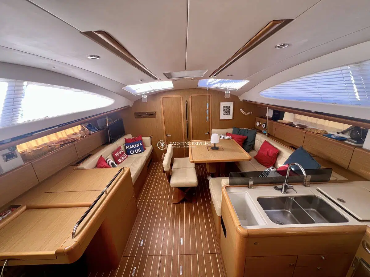 Ce Sun Odyssey 50 DS est un voilier élégant, solide et confortable, il a des performances marines parfait pour la navigation hauturière ou la vie à bord.