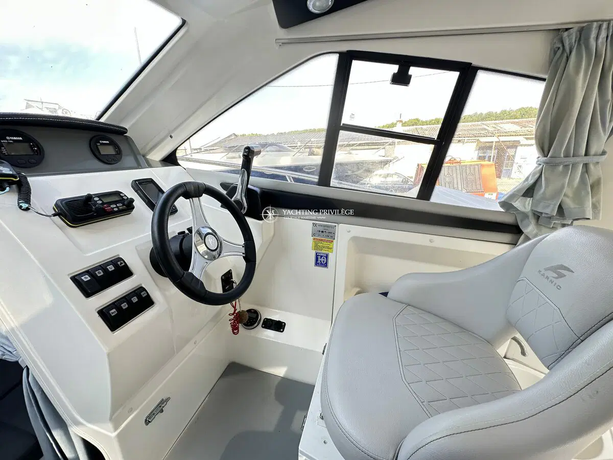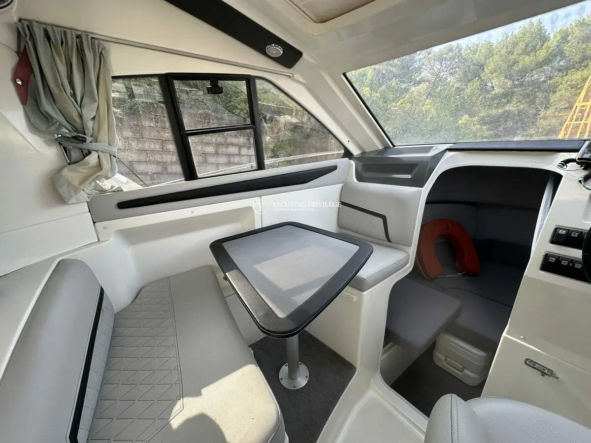 Le navire est équipé d’un sondeur Garmin, VHF Navicom, guindeau électrique, sellerie extérieur, table de cockpit, toit ouvrant, réfrigérateur, évier, échelle de bain, prise 220V, rideaux intérieur…