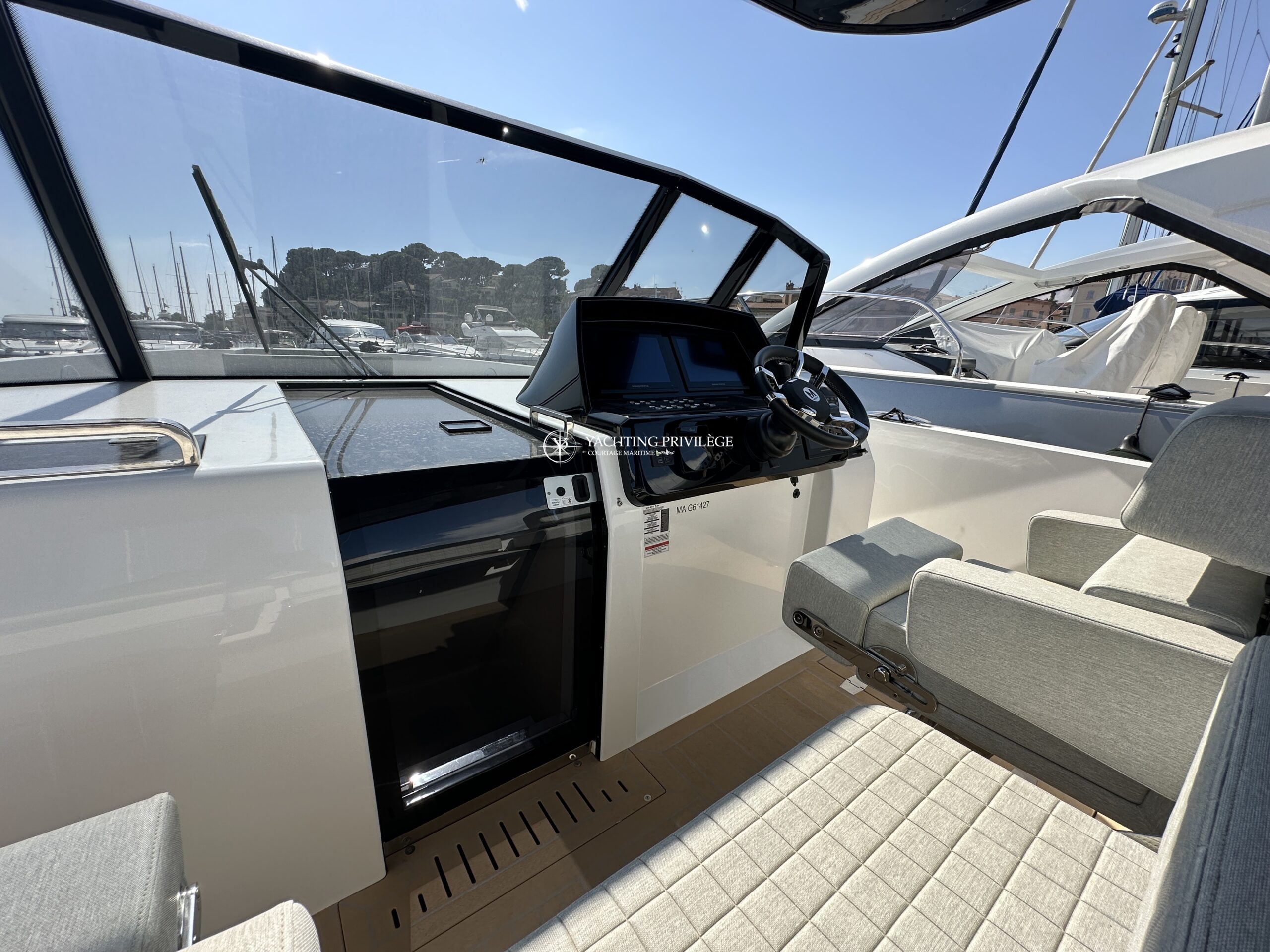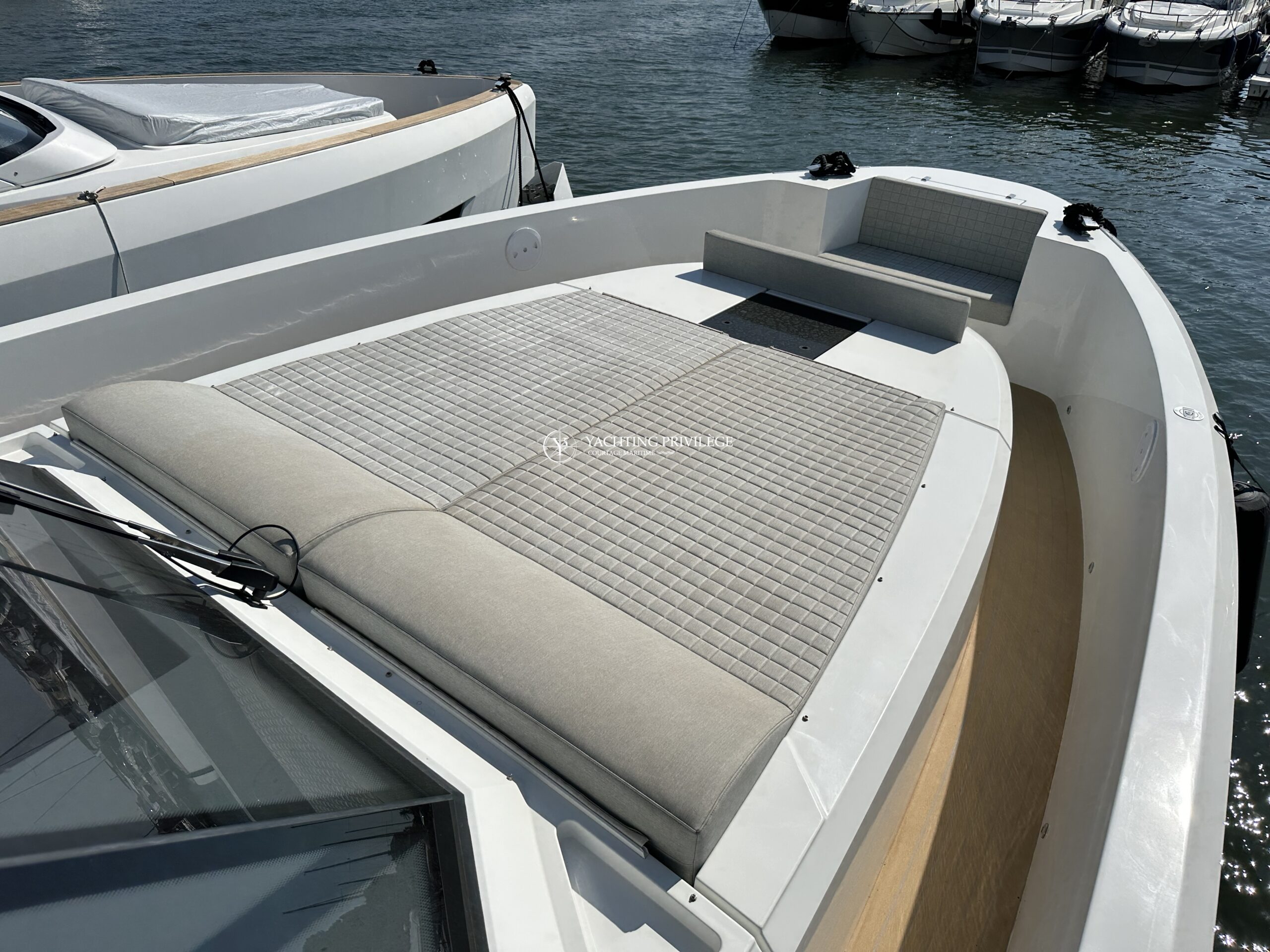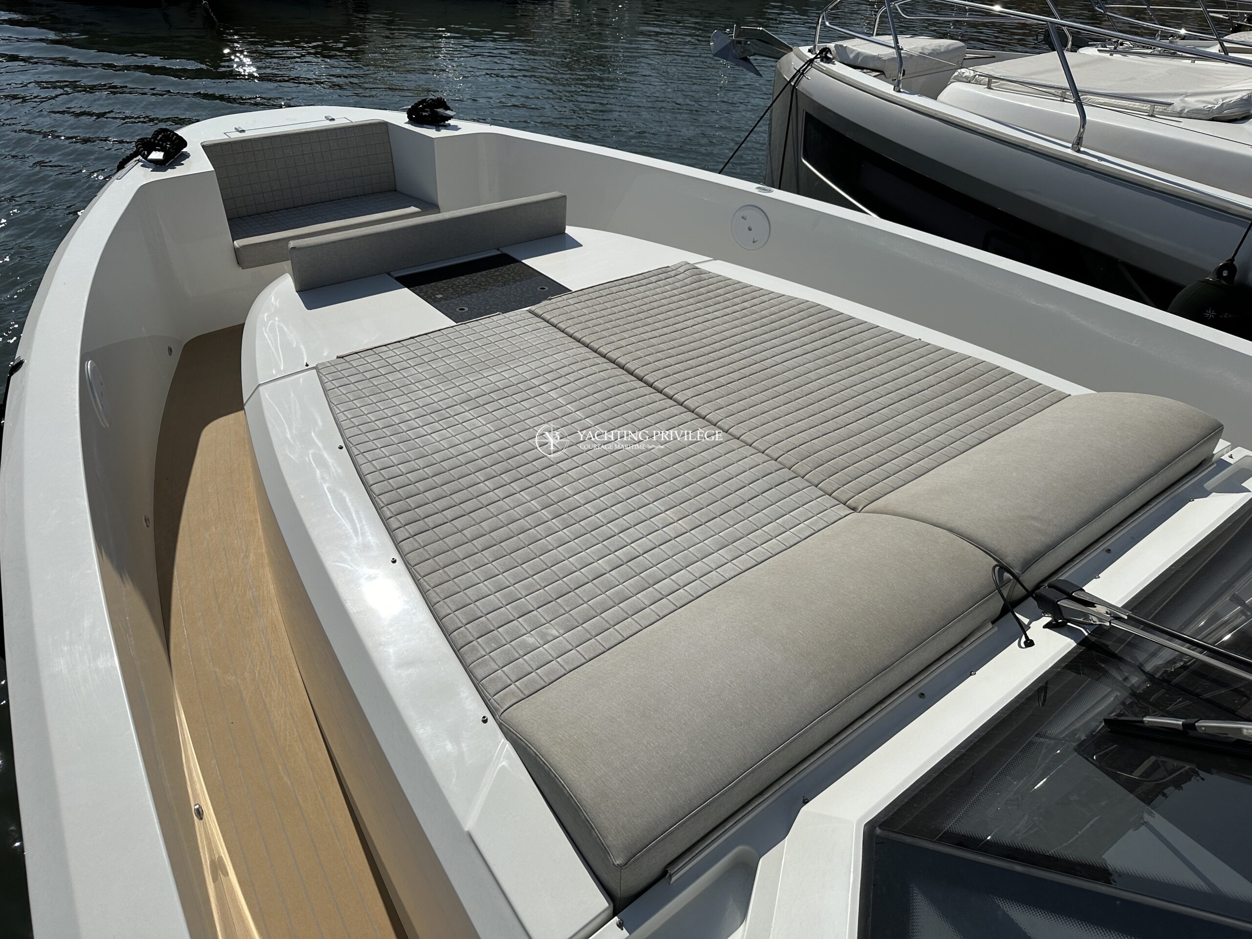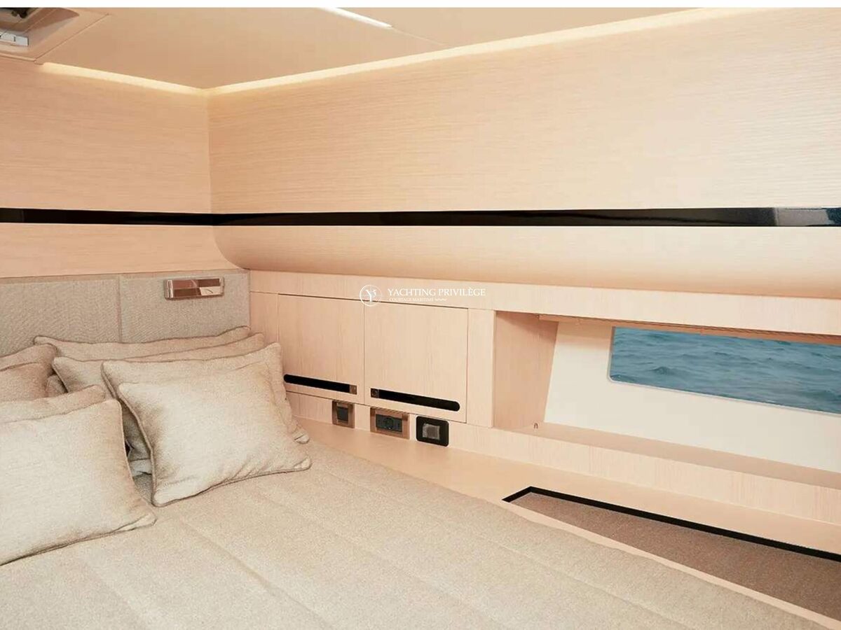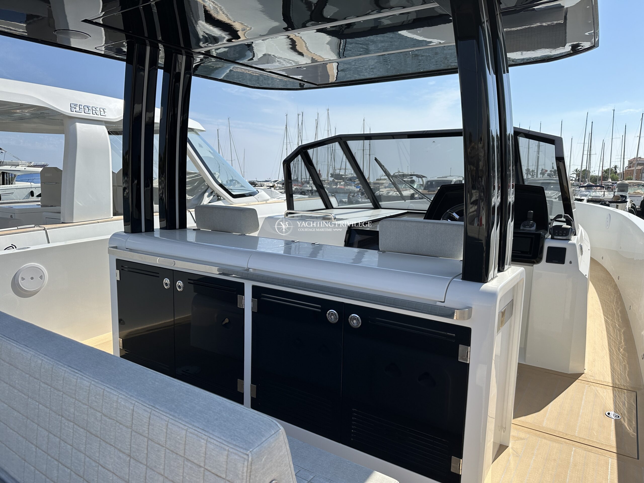 Navire équipé d'une plate-forme de bain hydraulique, guindeau électrique, table de cockpit hydraulique, cuisine extérieur, bain de soleil avant et arrière, groupe électrogène, centrale de navigation, GPS/Sondeur/Traceur, pilote automatique, climatisation...