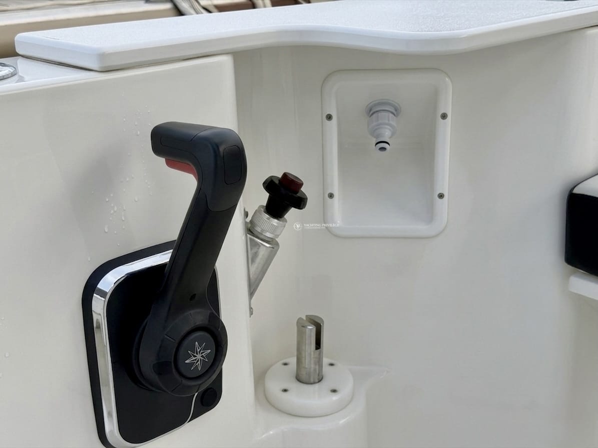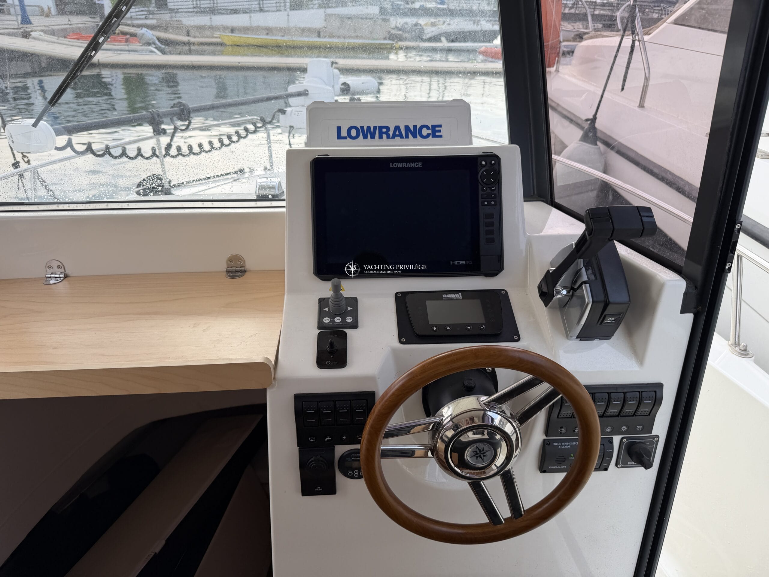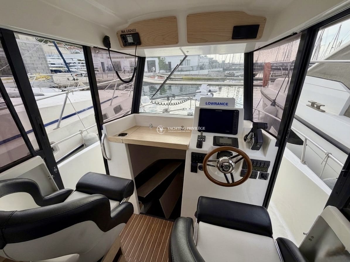 À bord, vous trouverez de nombreux équipements tels que la double commande, un GPS/sondeur avec traceur, un pilote automatique, un guindeau électrique, un vivier, un contrôleur de batterie ainsi qu’une casquette de timonerie, offrant un confort et une fonctionnalité optimaux pour la pêche comme pour la plaisance.