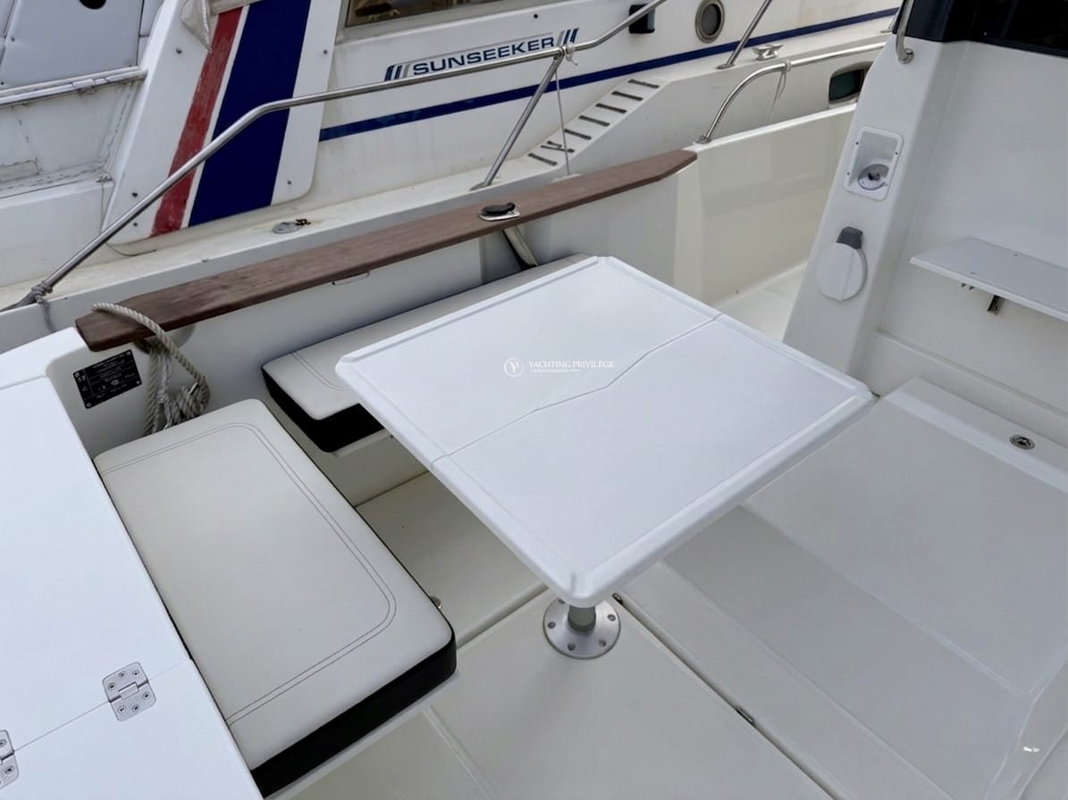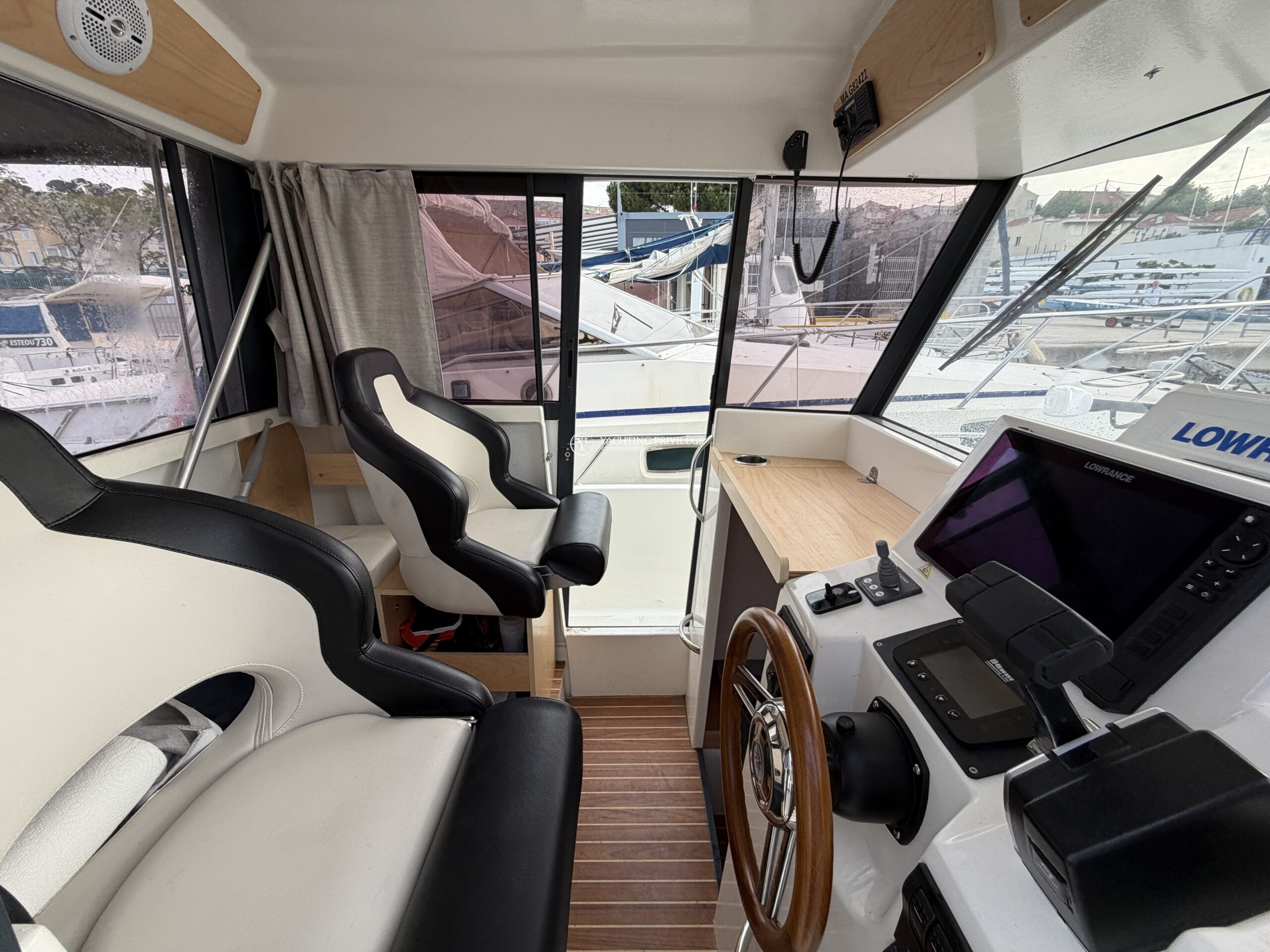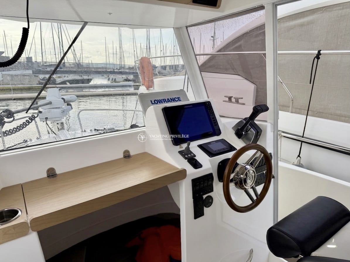 À bord, vous trouverez de nombreux équipements tels que la double commande, un GPS/sondeur avec traceur, un pilote automatique, un guindeau électrique, un vivier, un contrôleur de batterie ainsi qu’une casquette de timonerie, offrant un confort et une fonctionnalité optimaux pour la pêche comme pour la plaisance.