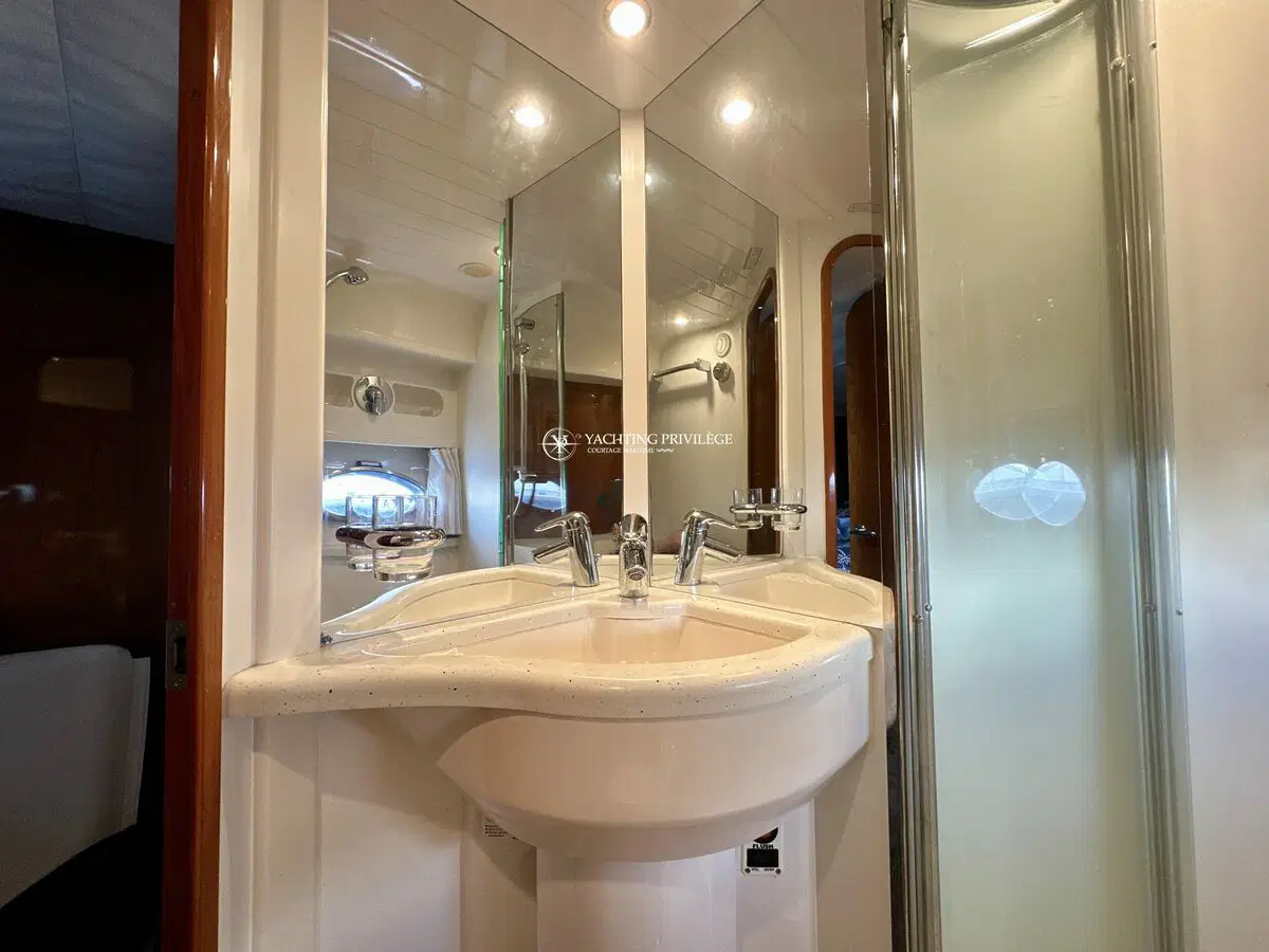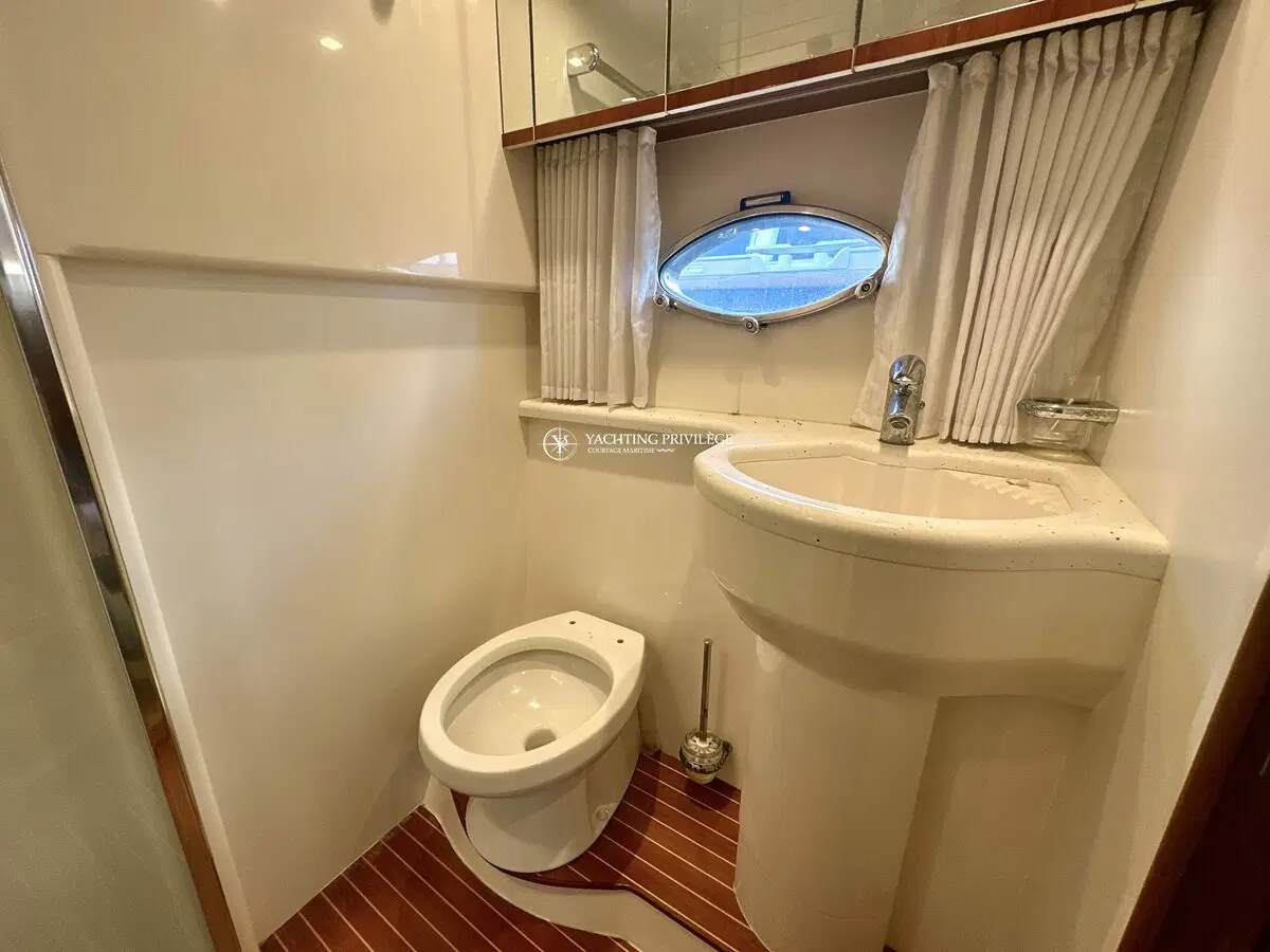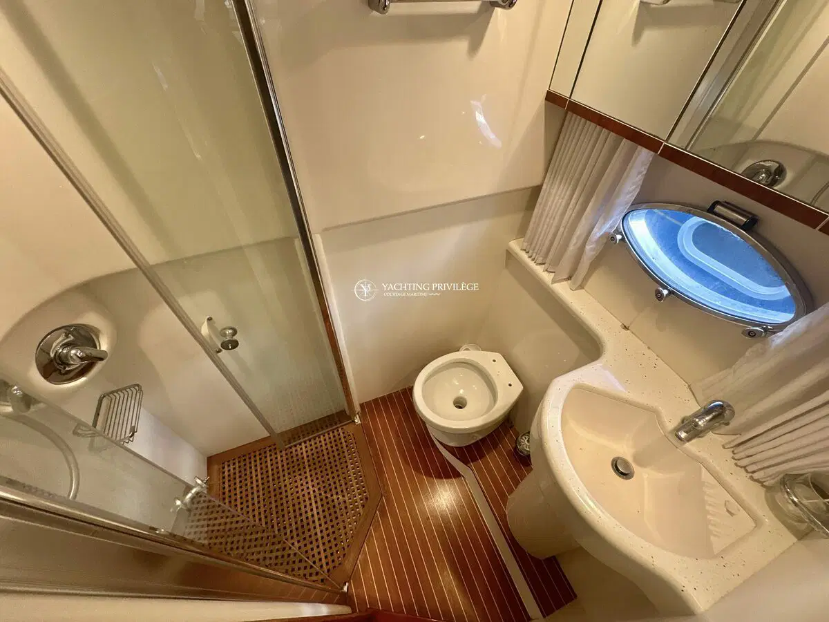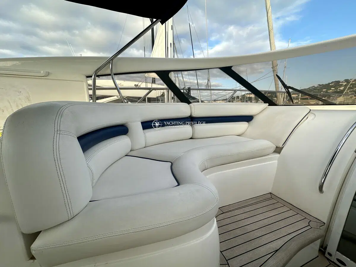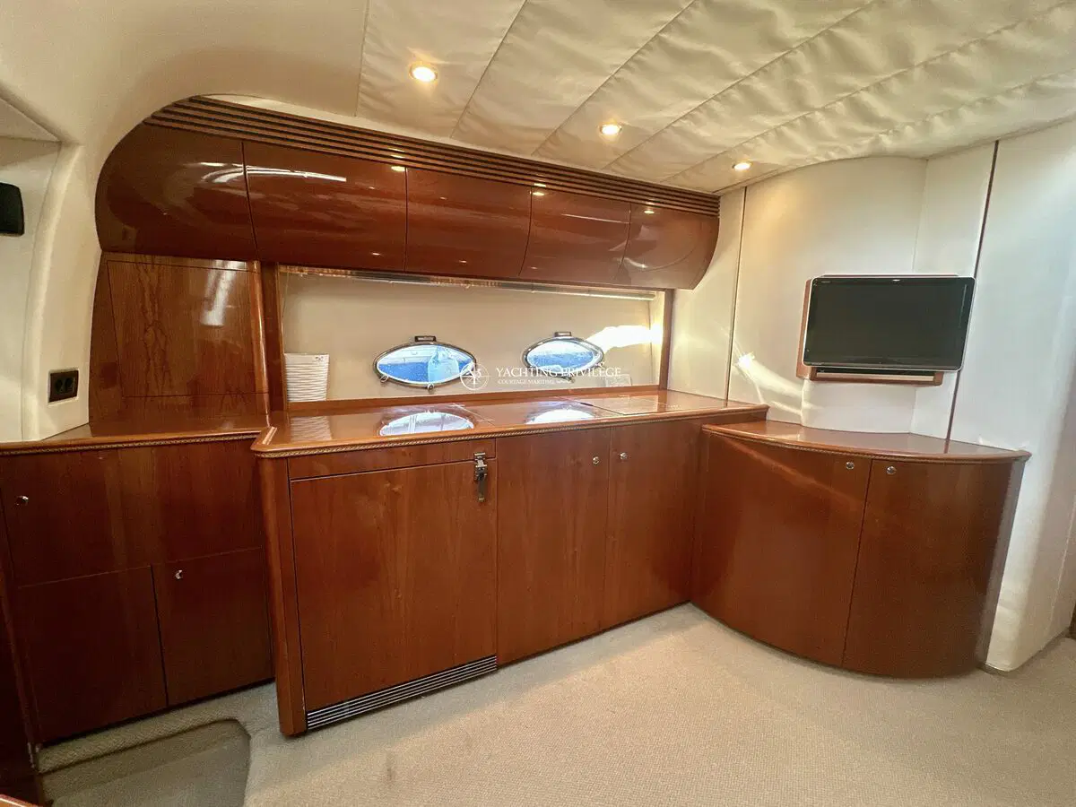 Très bon état général pour cette unité, selleries et textiles extérieurs en très bon état. Gps sondeur traceur Furuno, vhf, radar, pilote automatique. Passerelles Hydraulique, climatisation réversible, générateur, chargeur de batteries, 2 cabines, 2 salles de bain, 2 wc, cuisine, salon, 2 télévisions.