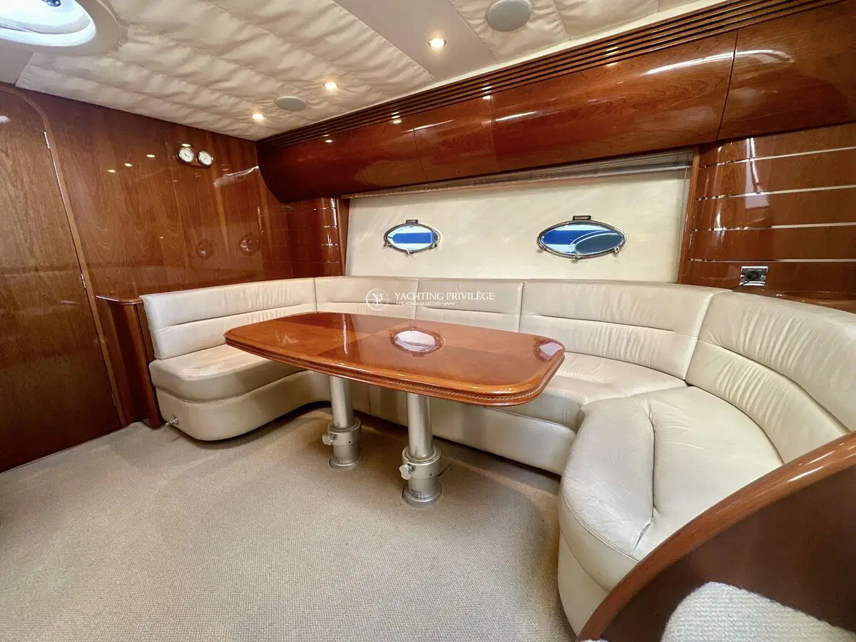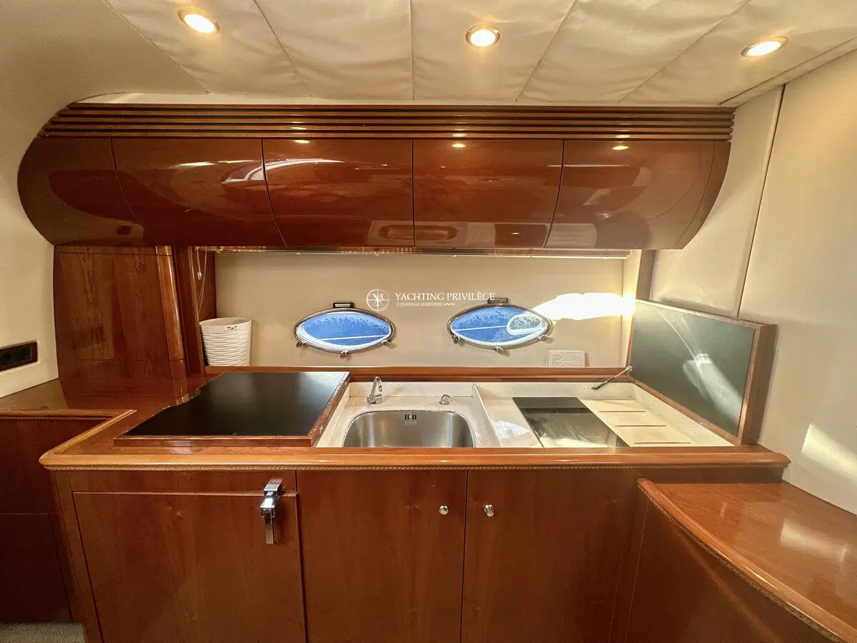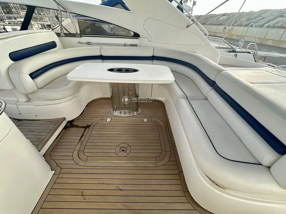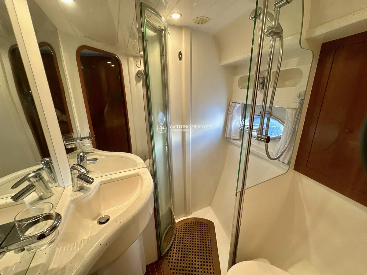 Très bon état général pour cette unité, selleries et textiles extérieurs en très bon état. Gps sondeur traceur Furuno, vhf, radar, pilote automatique. Passerelles Hydraulique, climatisation réversible, générateur, chargeur de batteries, 2 cabines, 2 salles de bain, 2 wc, cuisine, salon, 2 télévisions.
