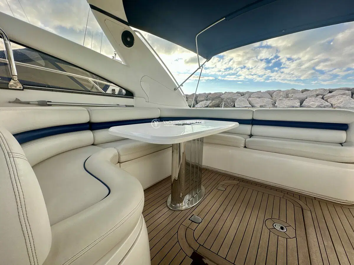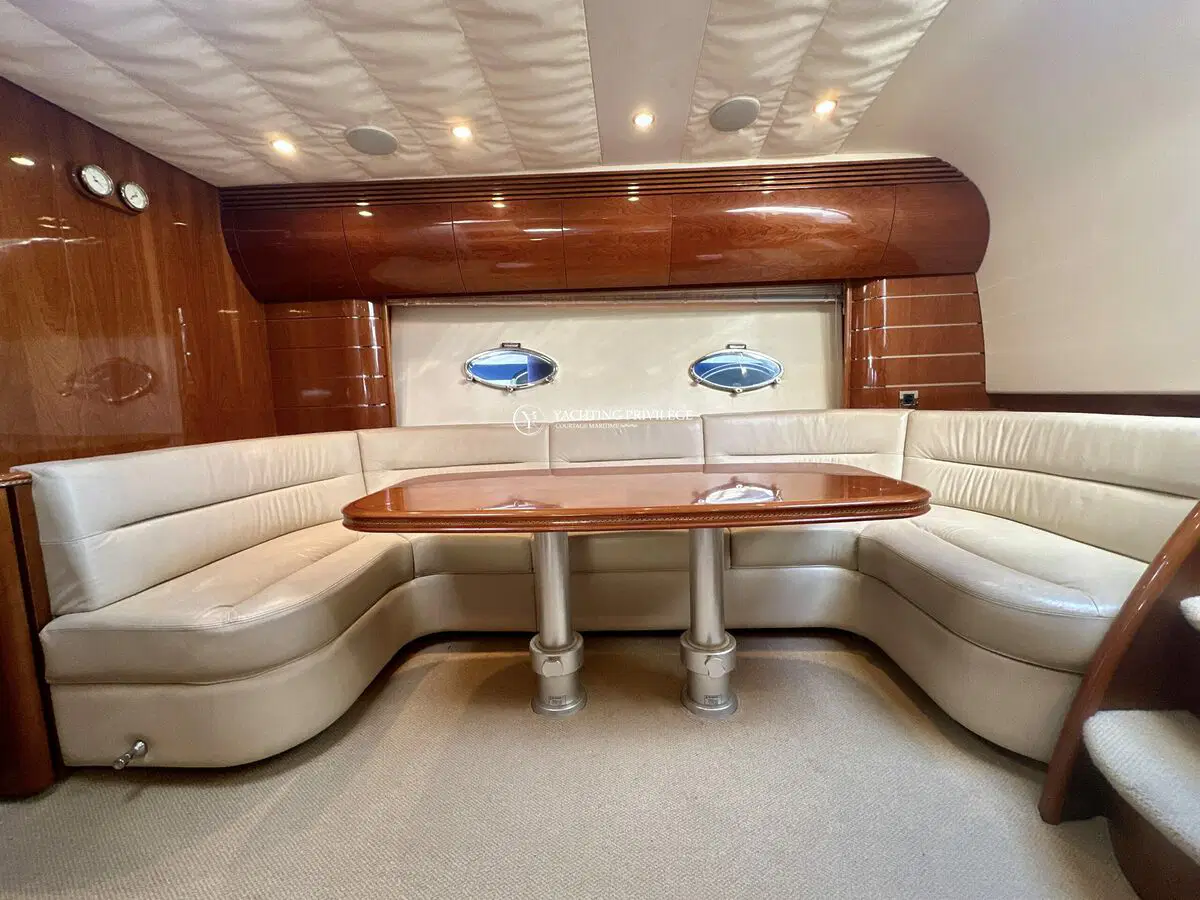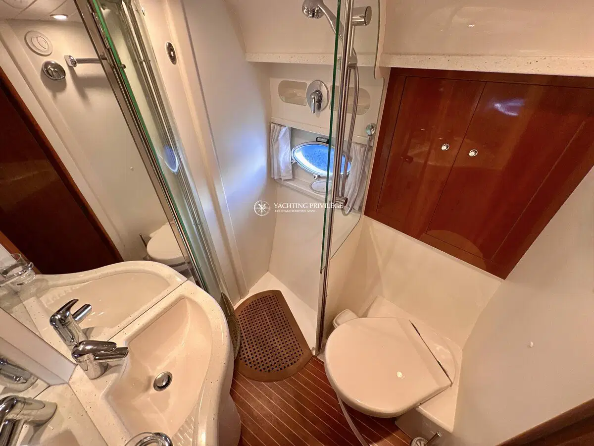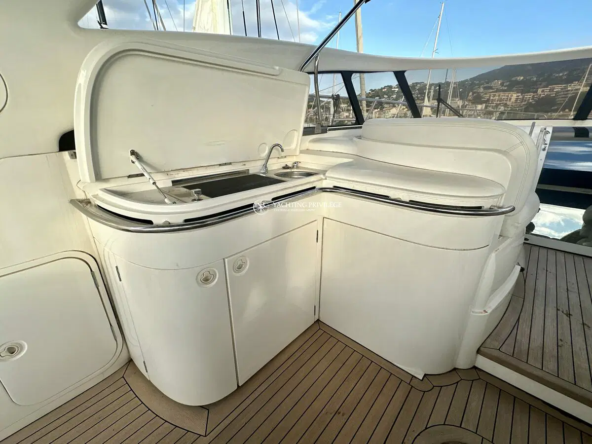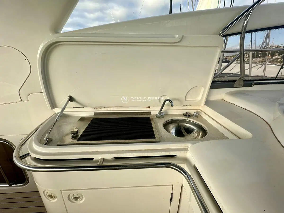 Très bon état général pour cette unité, selleries et textiles extérieurs en très bon état. Gps sondeur traceur Furuno, vhf, radar, pilote automatique. Passerelles Hydraulique, climatisation réversible, générateur, chargeur de batteries, 2 cabines, 2 salles de bain, 2 wc, cuisine, salon, 2 télévisions.