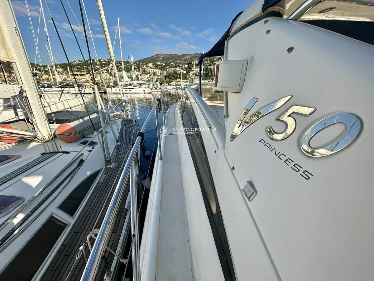 Princess V50 de 2003, motorisation Volvo D12 2x715cv, totalisant +/- 850h de navigation.