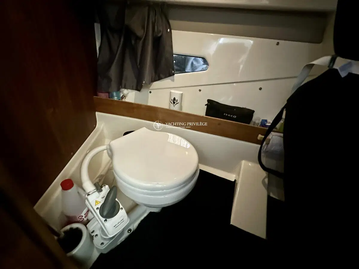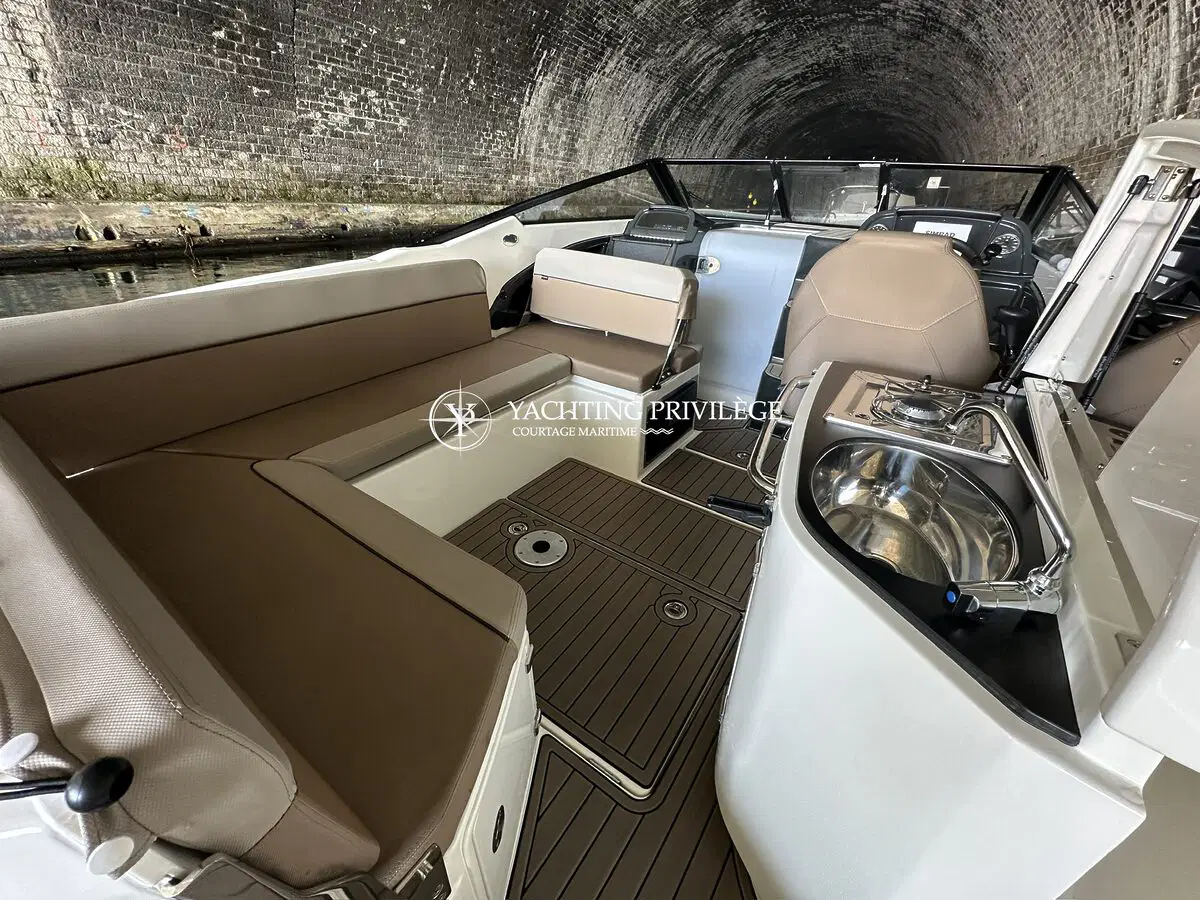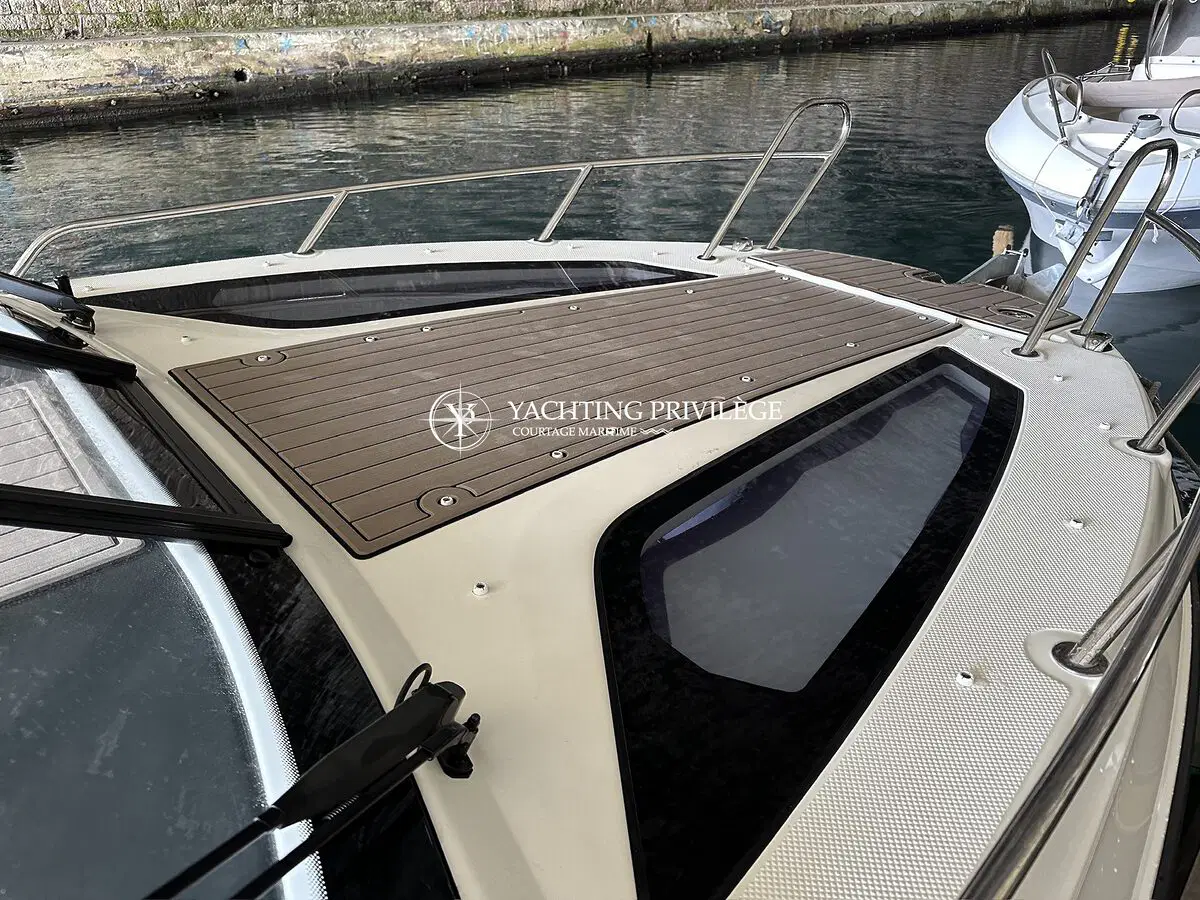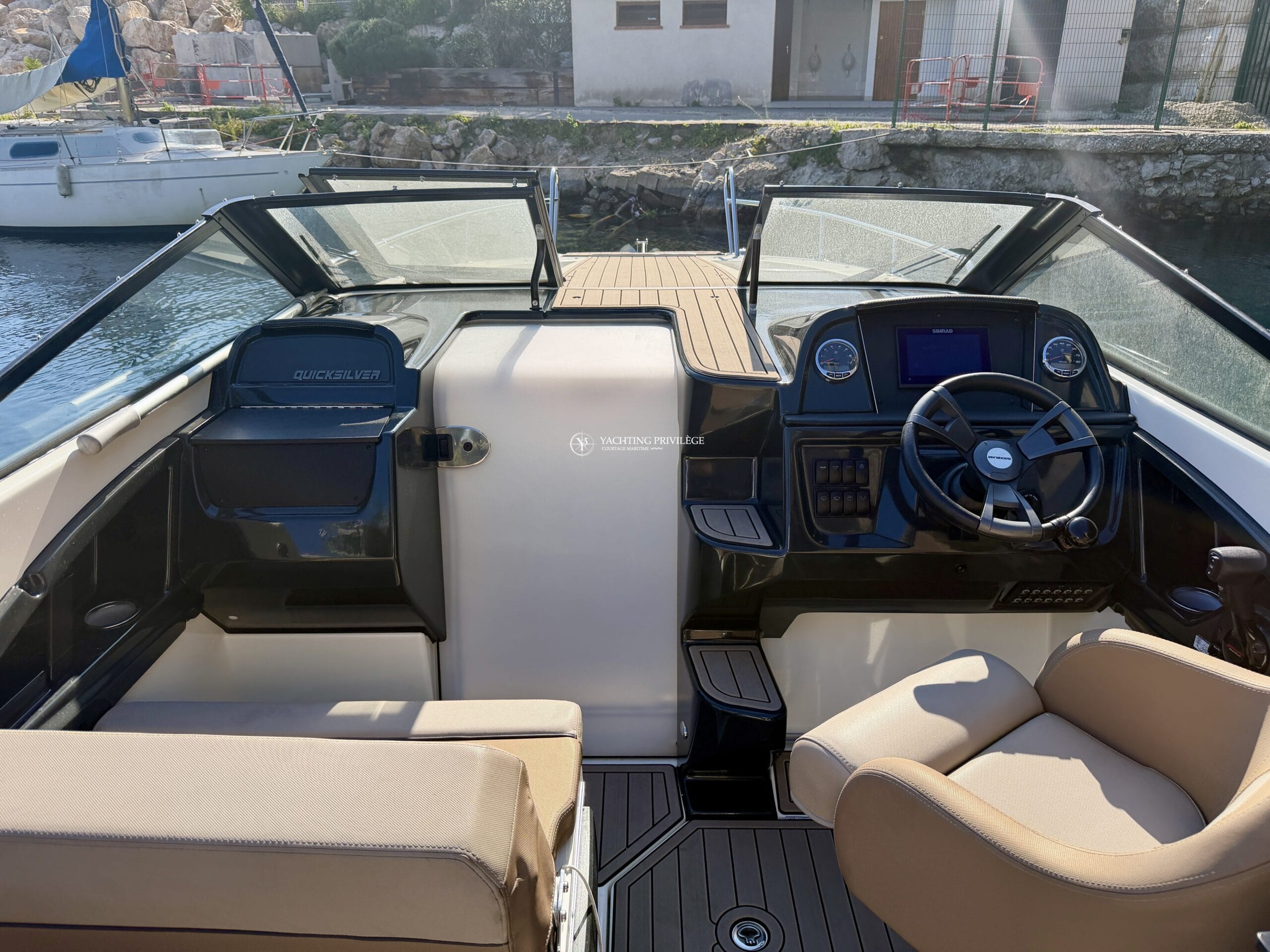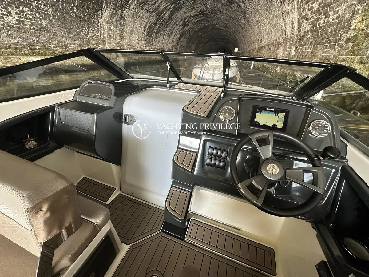 Le bateau est équipé d’une cuisine extérieure avec réfrigérateur, évier, réchaud à gaz. Bains de soleil avant, carré arrière, table de cockpit, bimini, taud d’hivernage, guideau électrique, GPS/Sondeur Simrad, Activ trim, cabine avec deux couchages et WC marin.