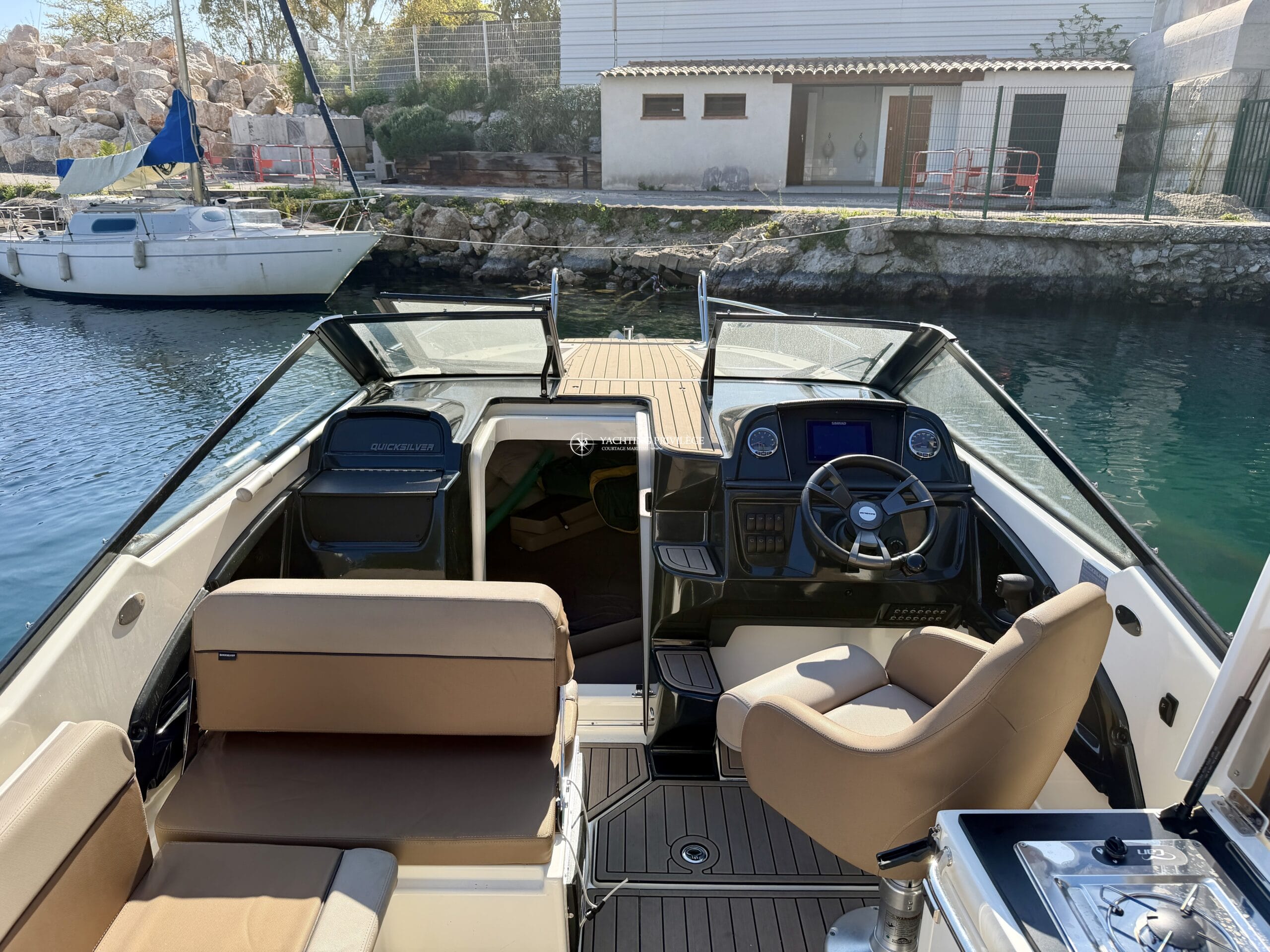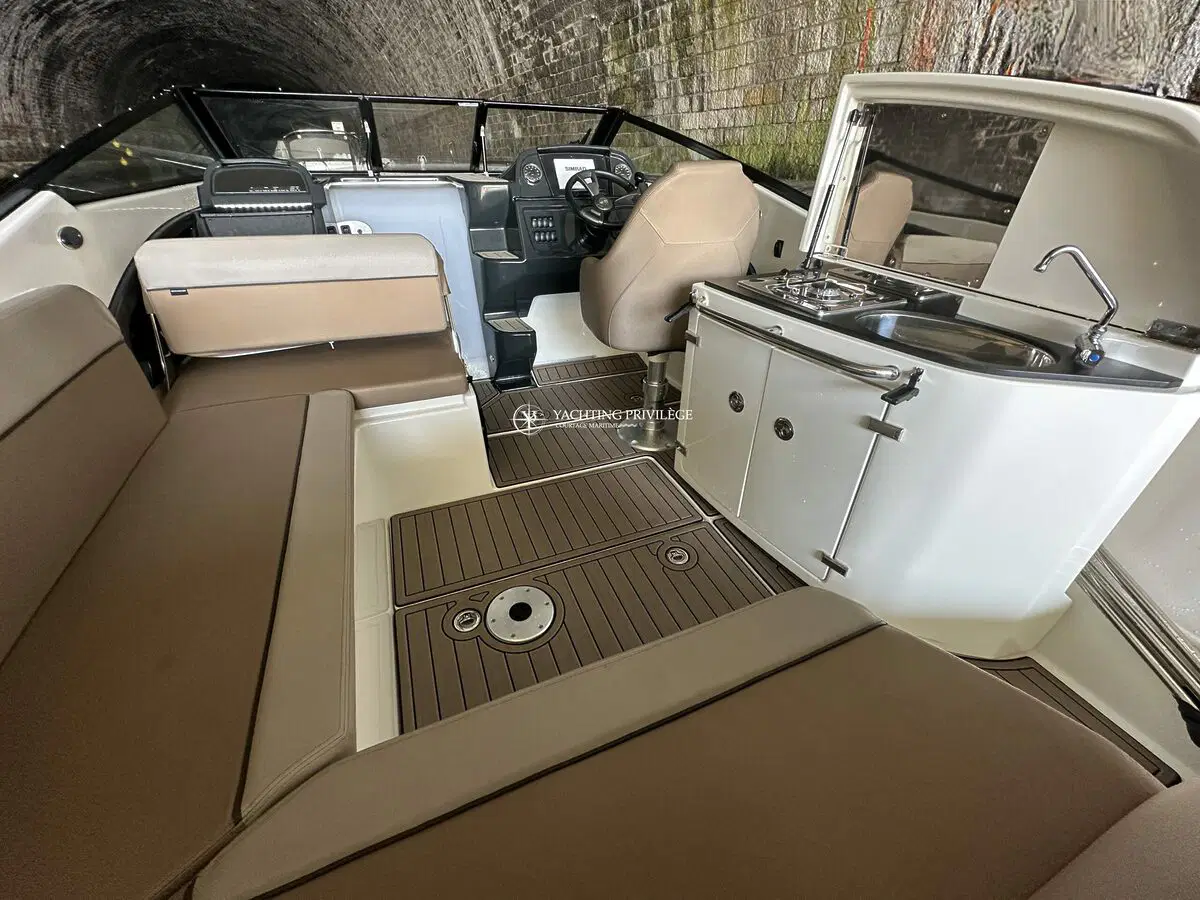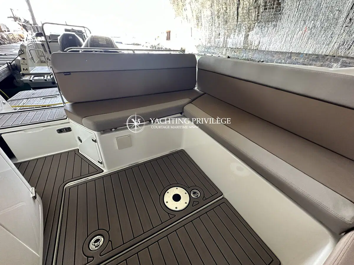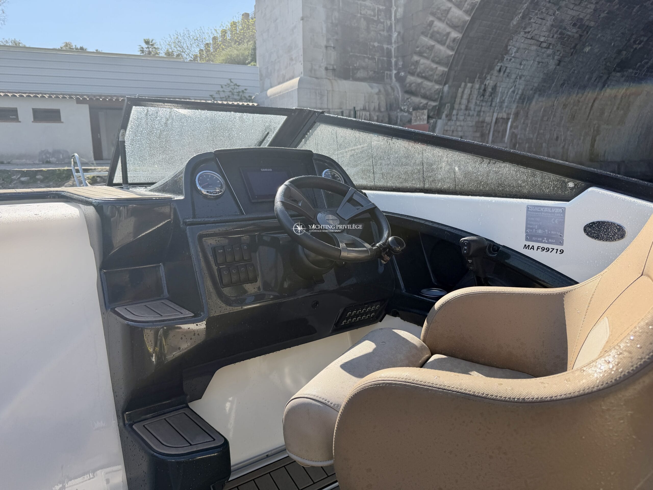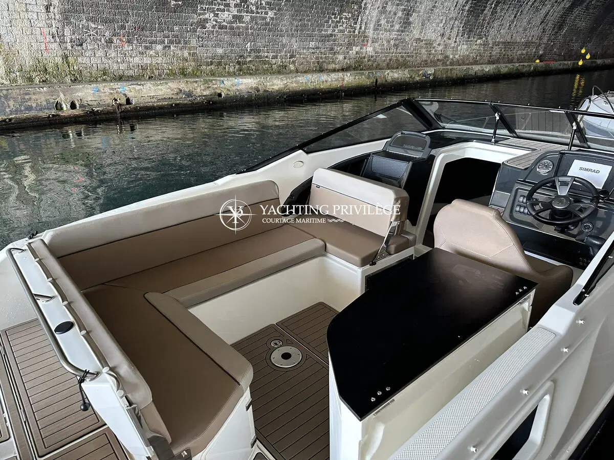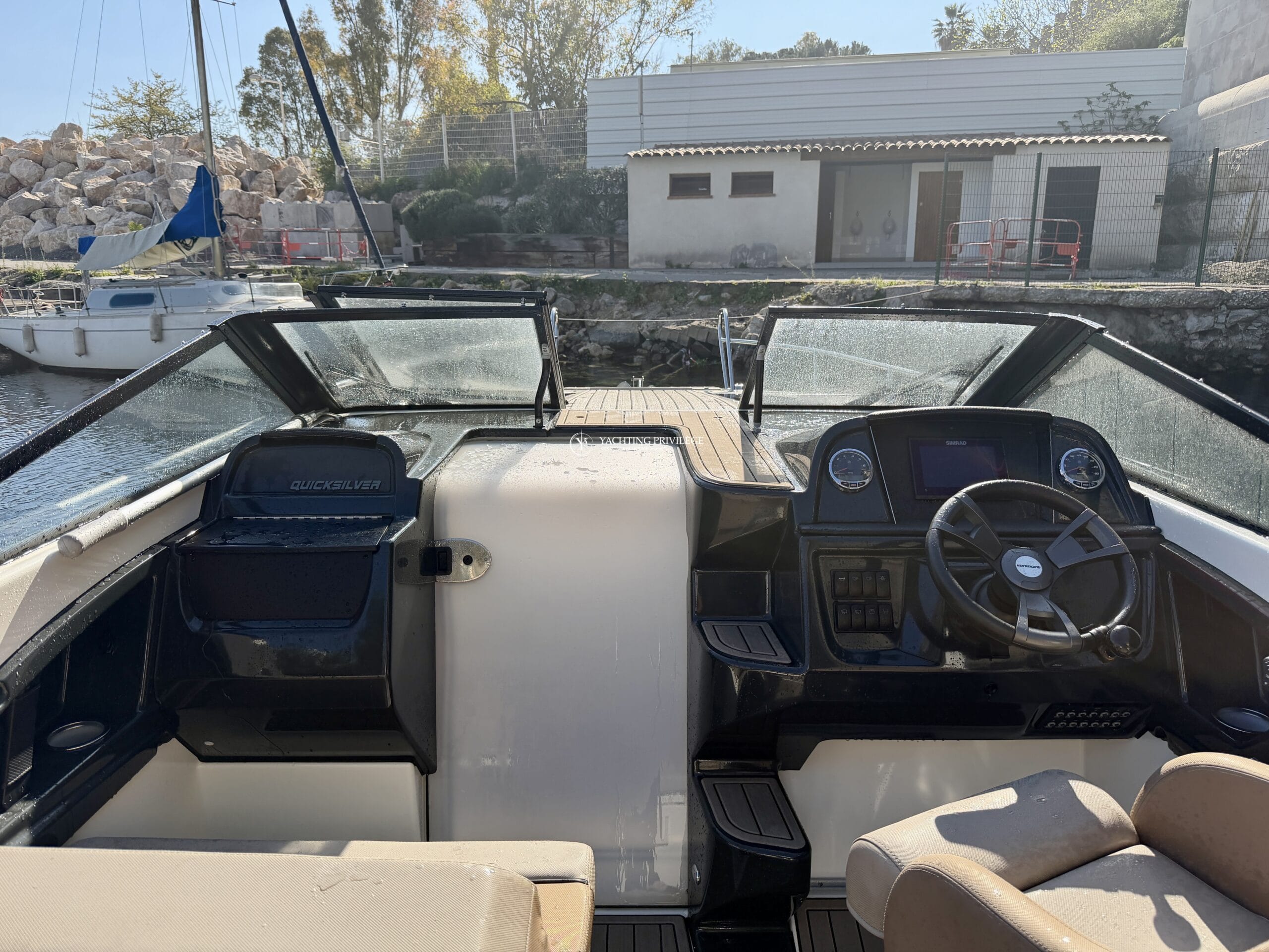 Le bateau est équipé d’une cuisine extérieure avec réfrigérateur, évier, réchaud à gaz. Bains de soleil avant, carré arrière, table de cockpit, bimini, taud d’hivernage, guideau électrique, GPS/Sondeur Simrad, Activ trim, cabine avec deux couchages et WC marin.