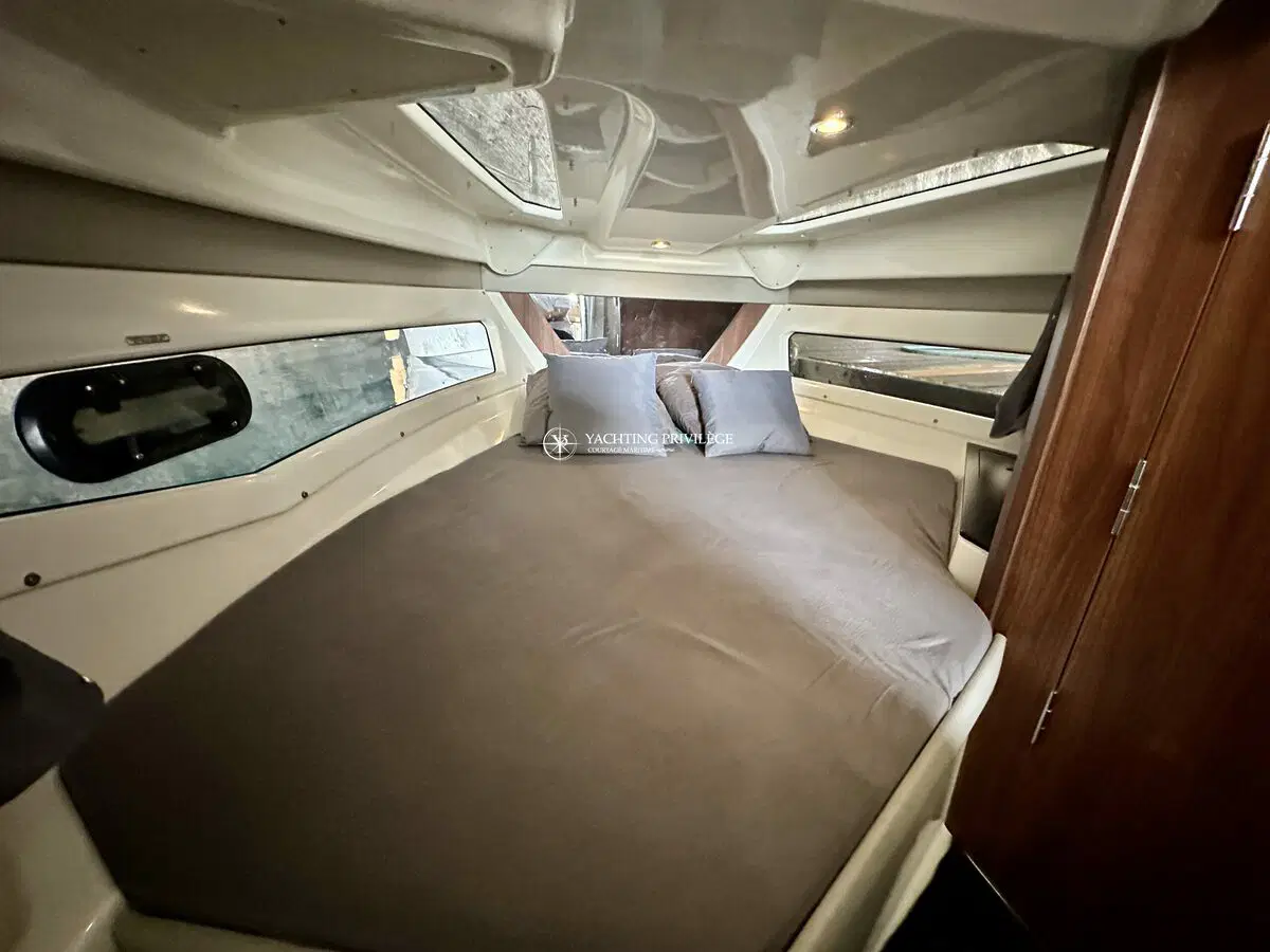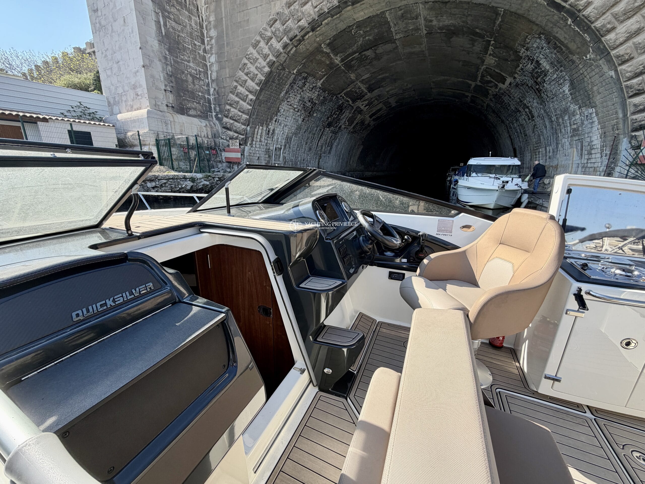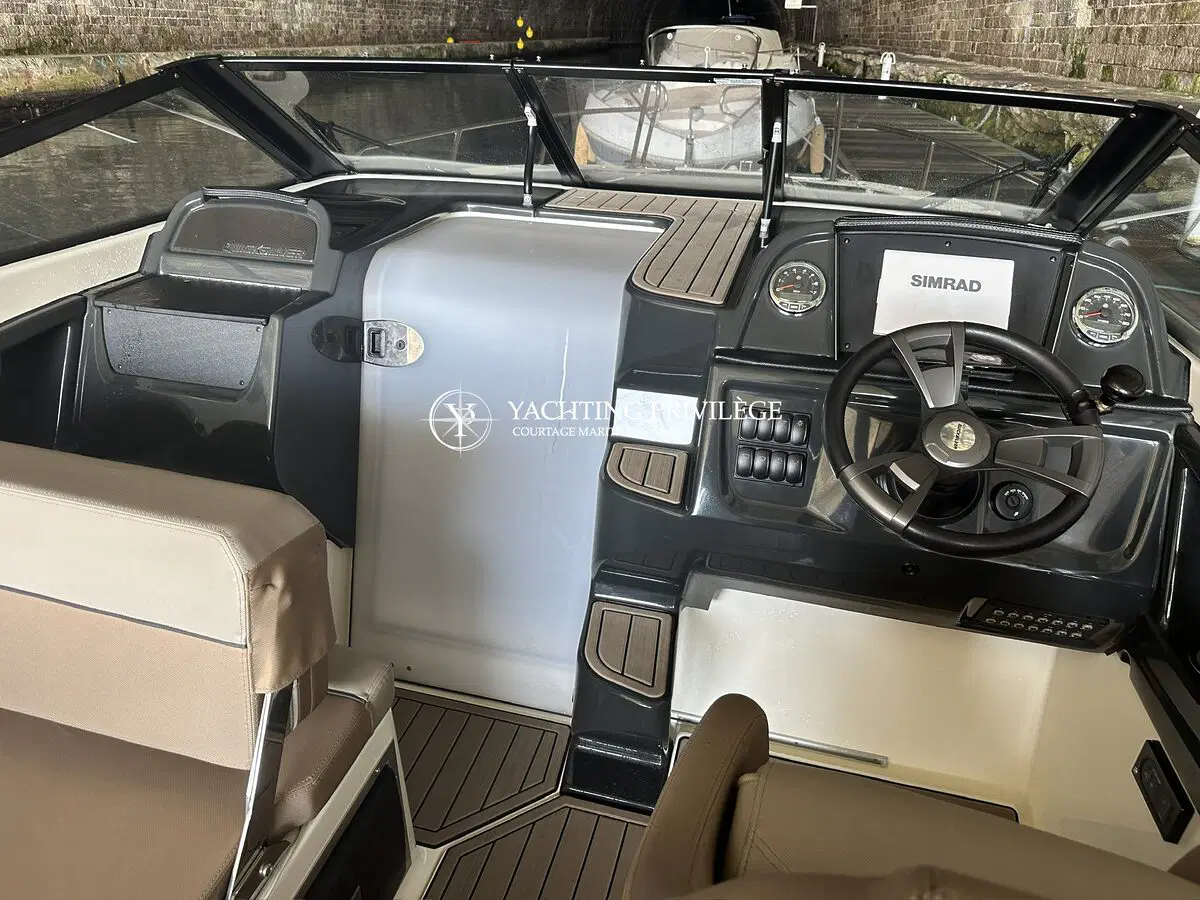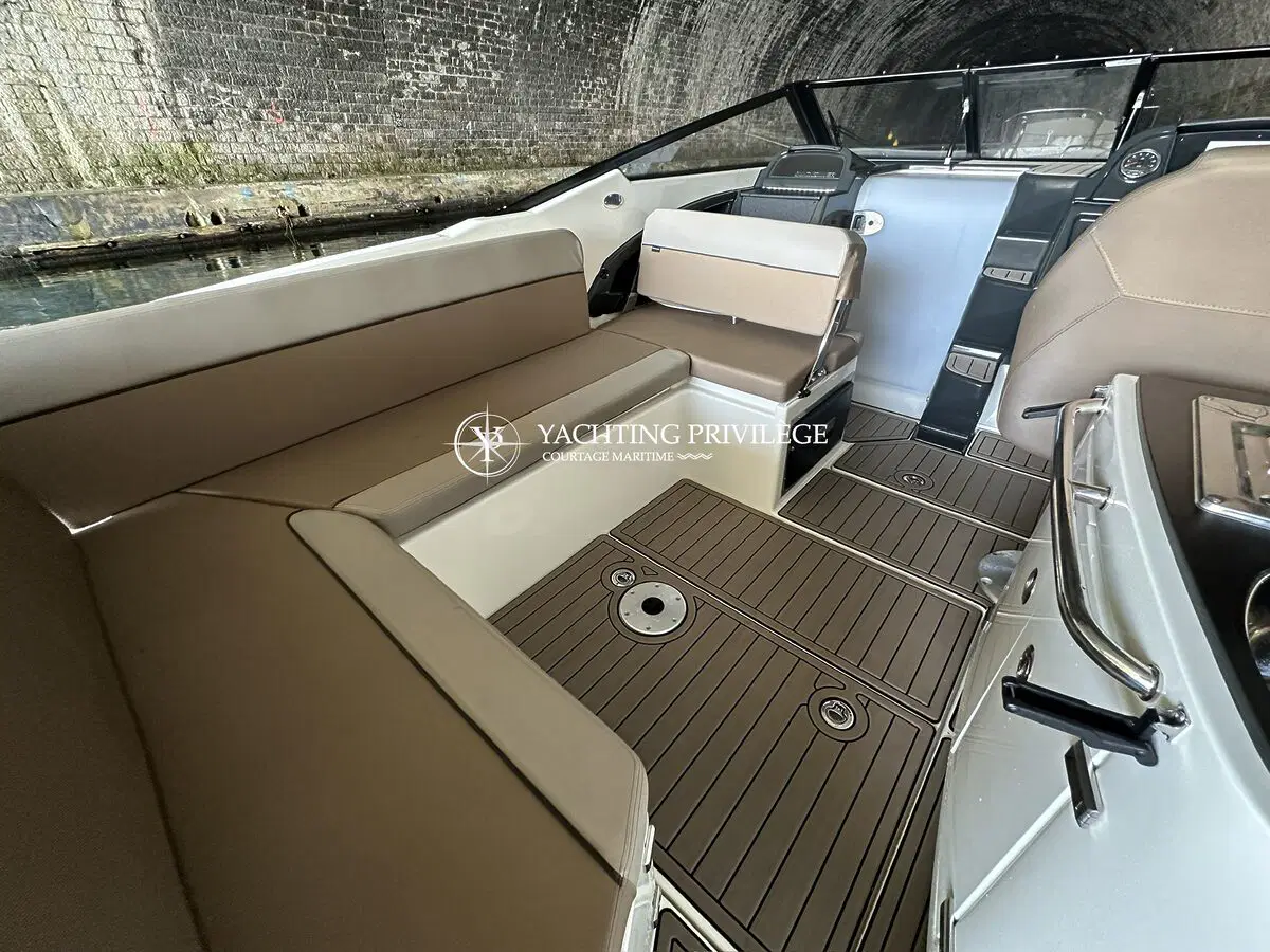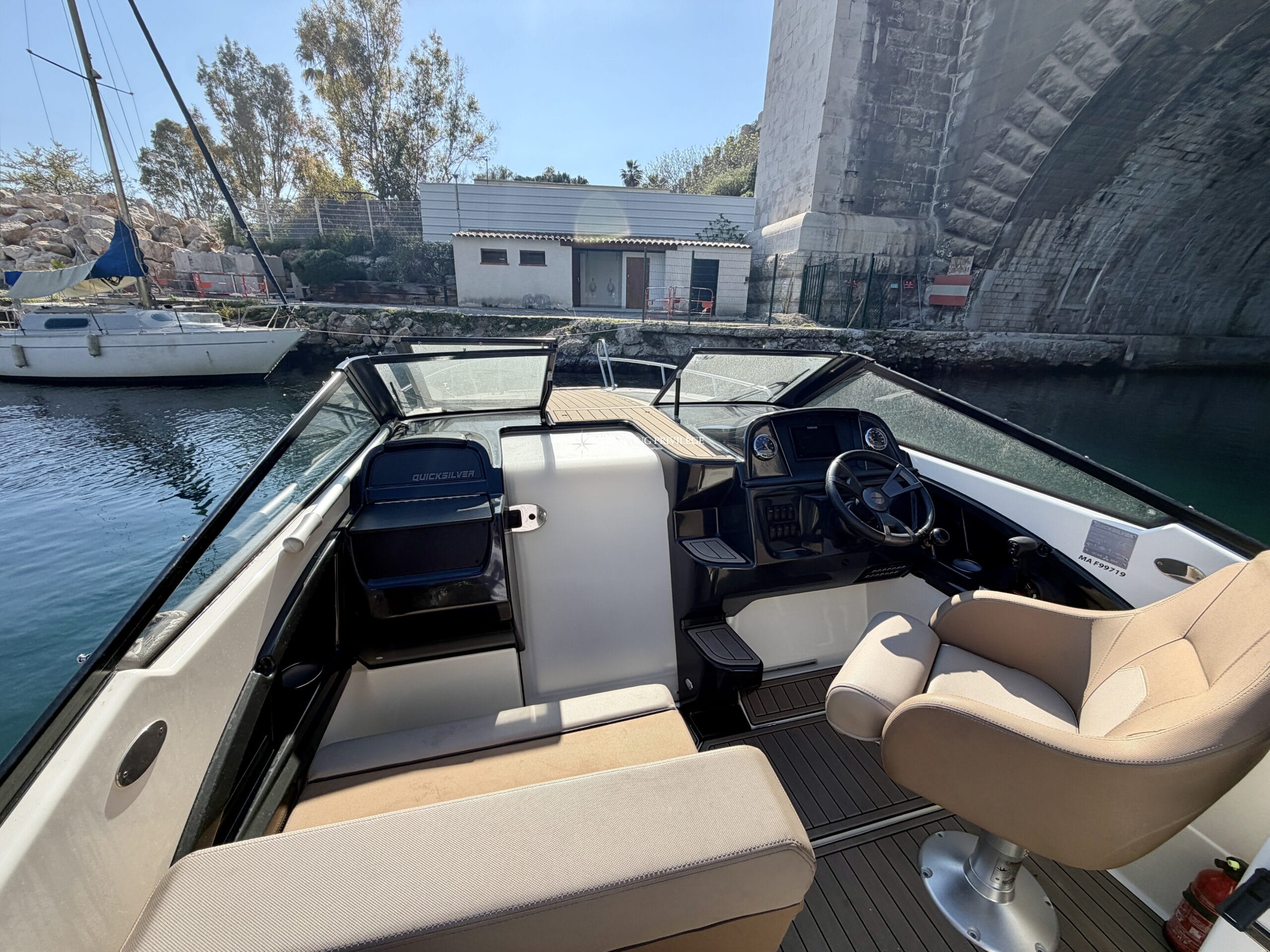 Le bateau est équipé d’une cuisine extérieure avec réfrigérateur, évier, réchaud à gaz. Bains de soleil avant, carré arrière, table de cockpit, bimini, taud d’hivernage, guideau électrique, GPS/Sondeur Simrad, Activ trim, cabine avec deux couchages et WC marin.