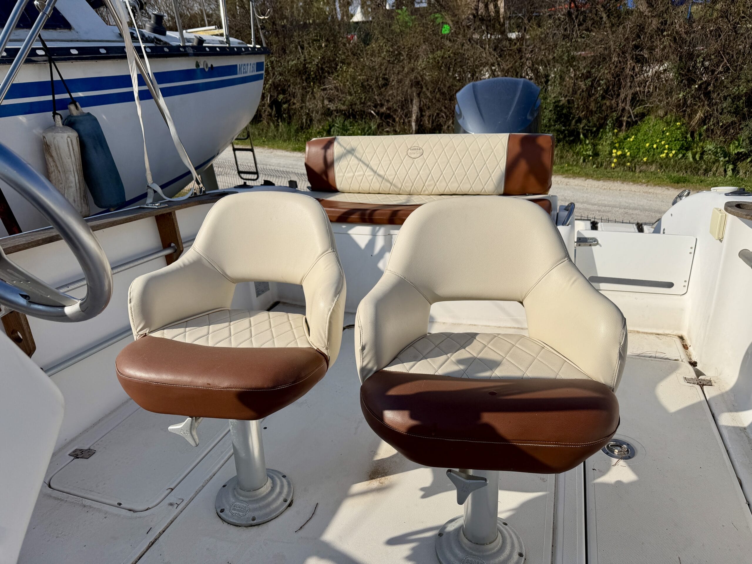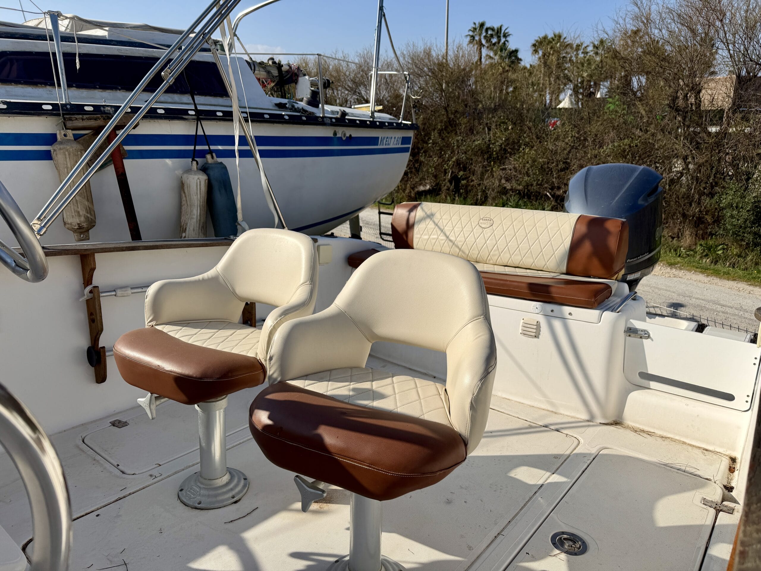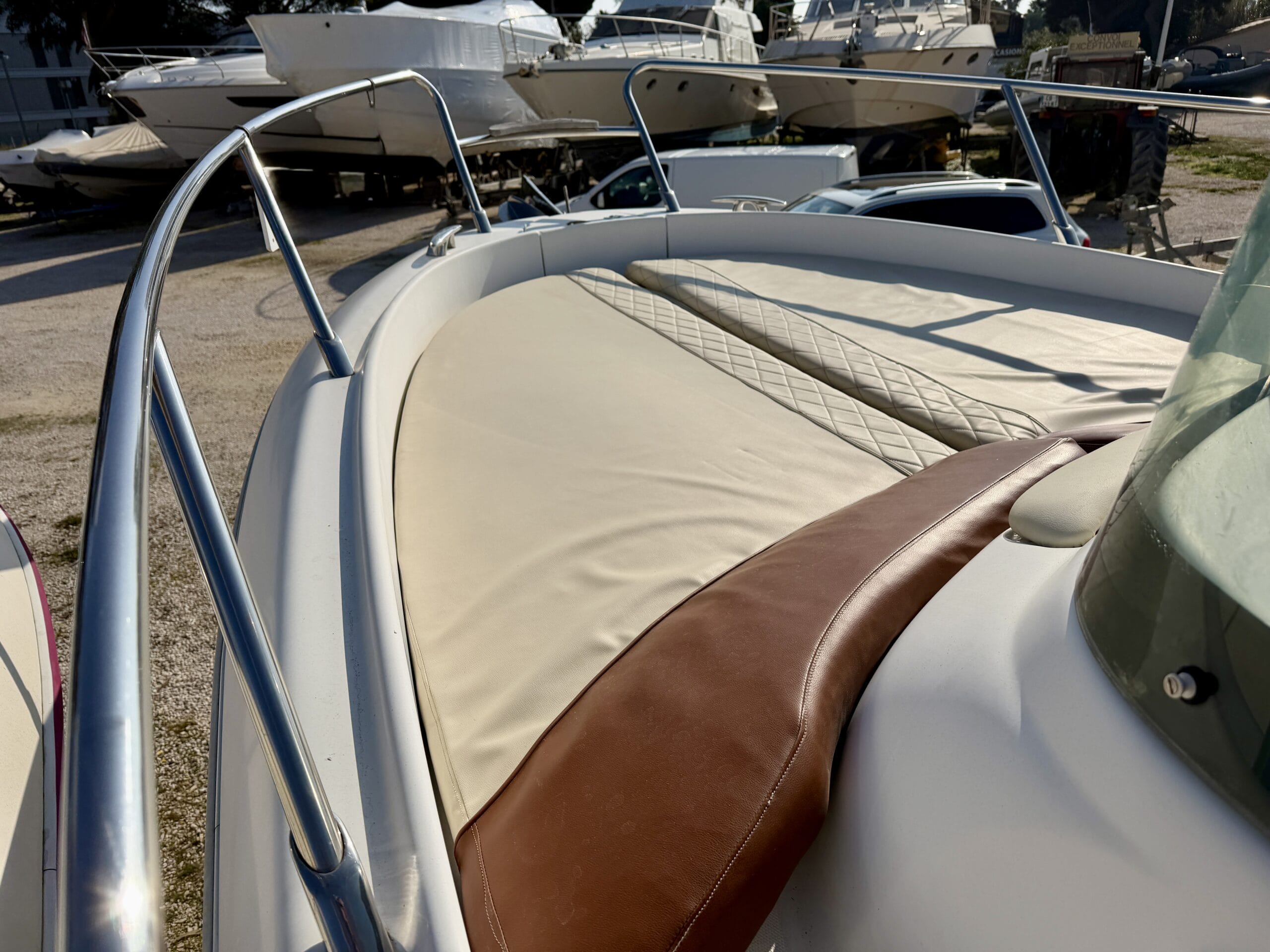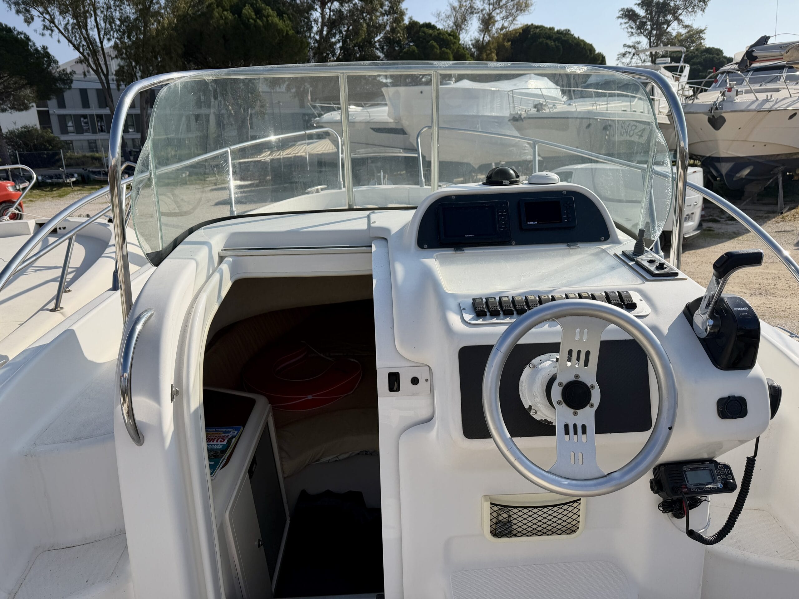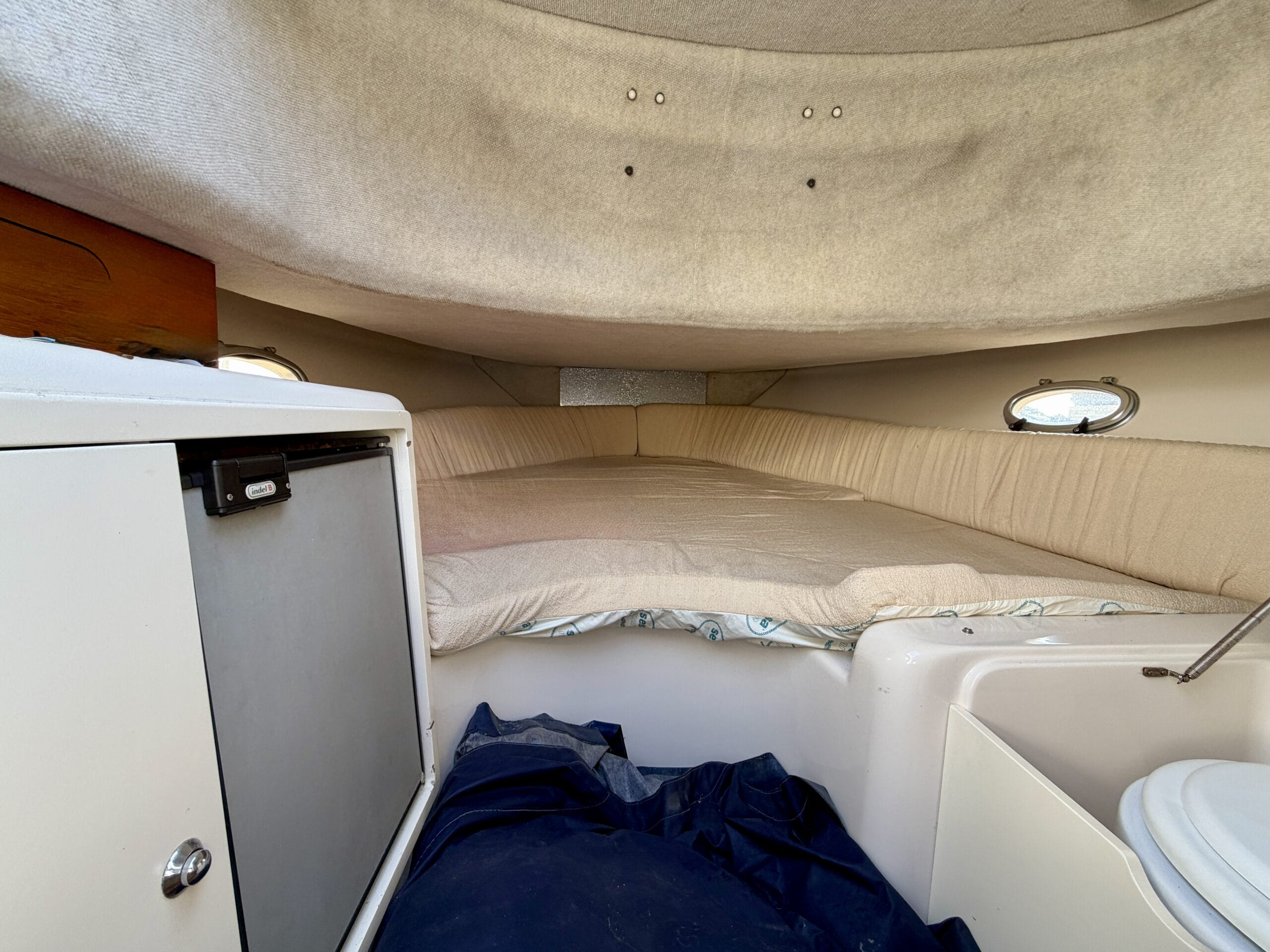 À l’intérieur, le bateau offre un espace confortable avec deux couchages, un WC électrique ainsi qu’un réfrigérateur, permettant de profiter pleinement des sorties à la journée ou sur plusieurs jours.