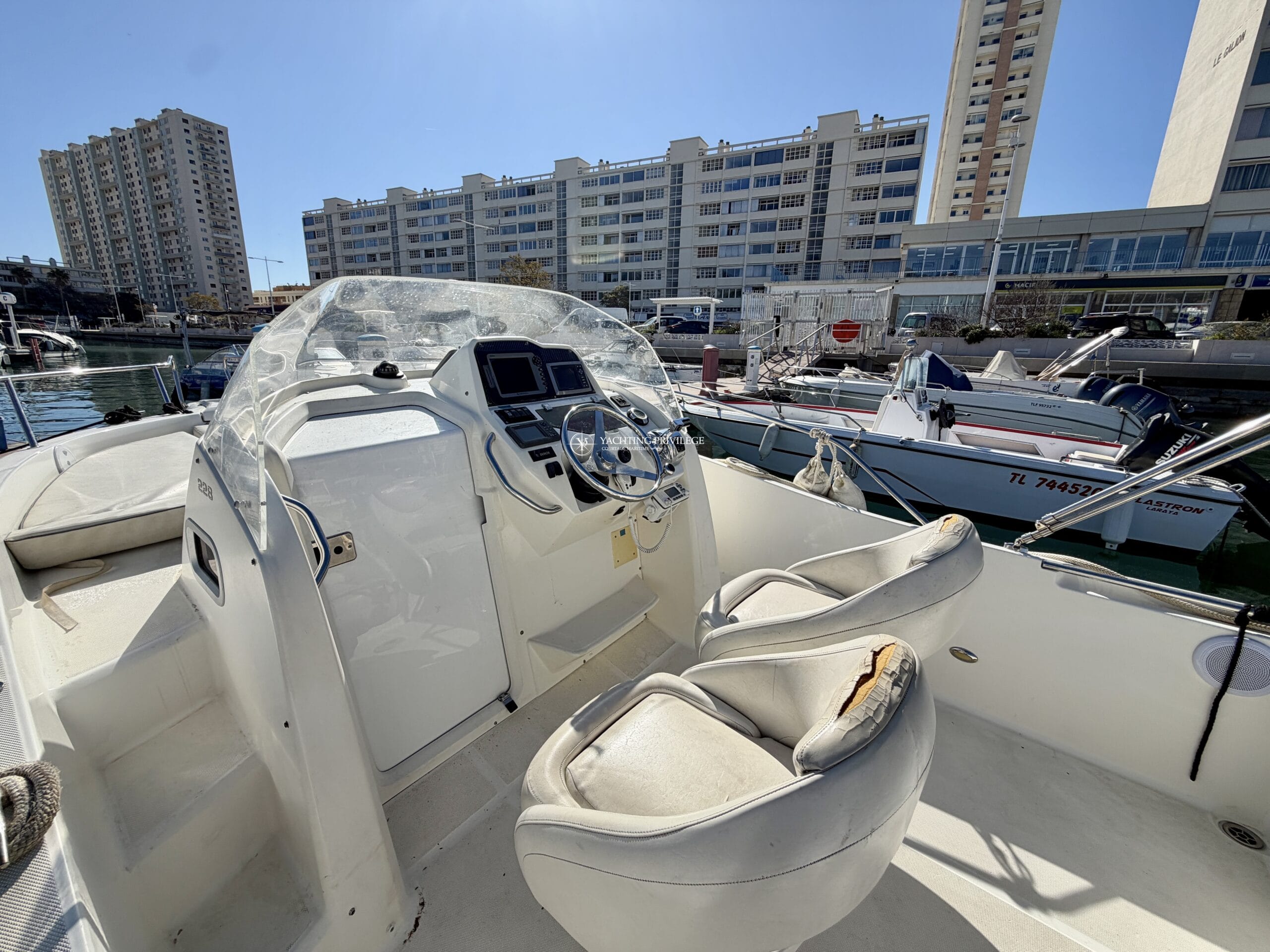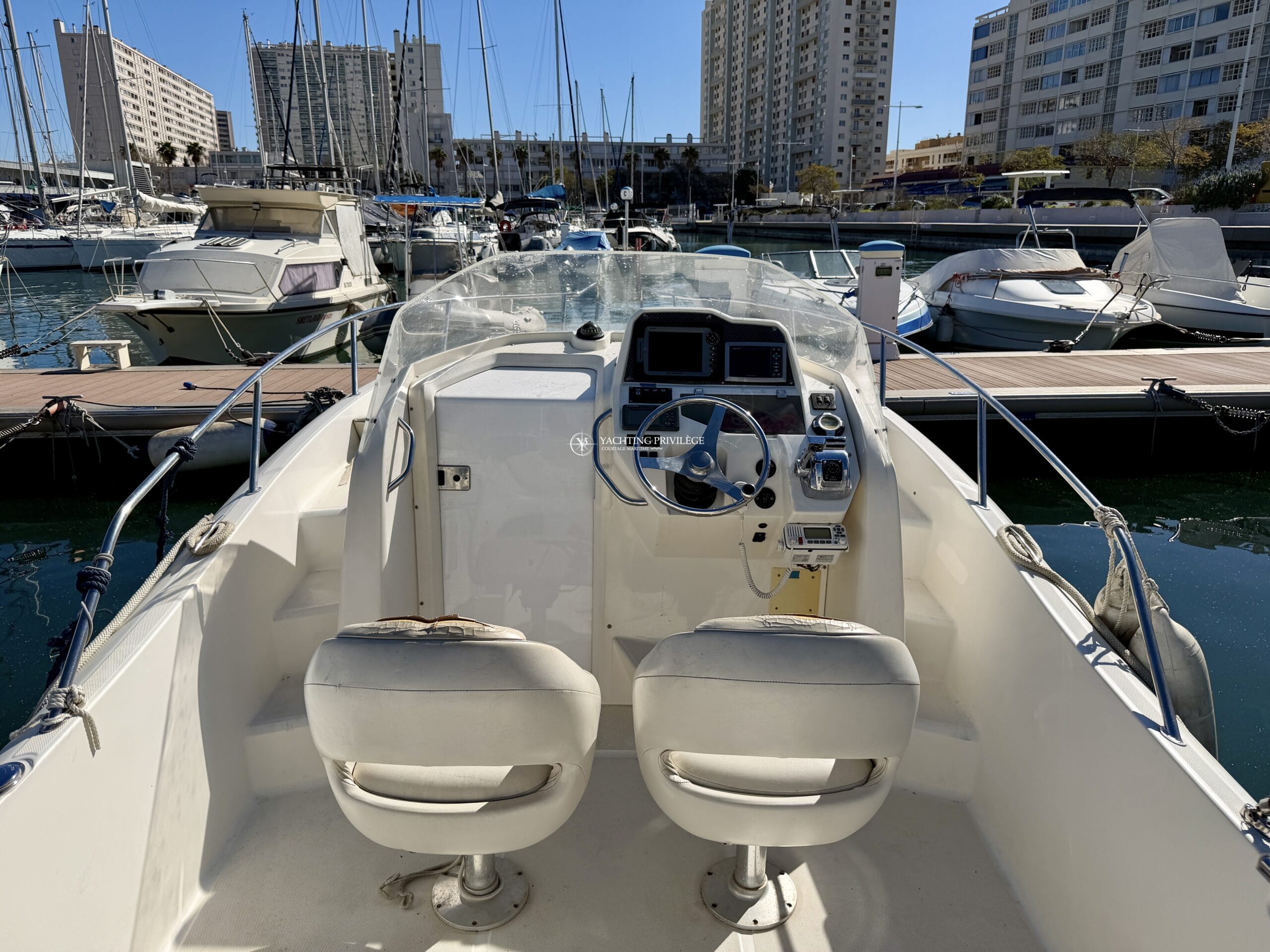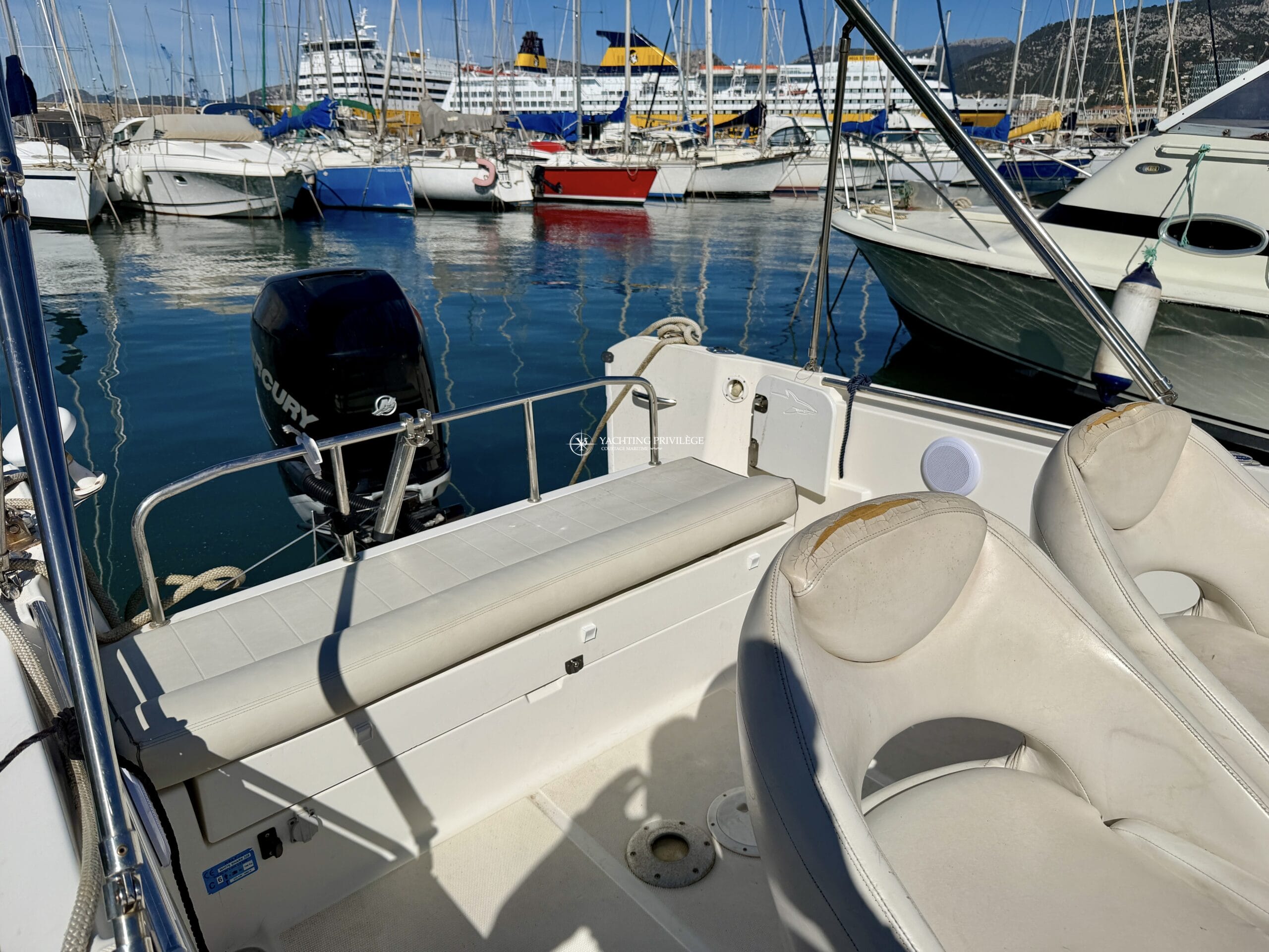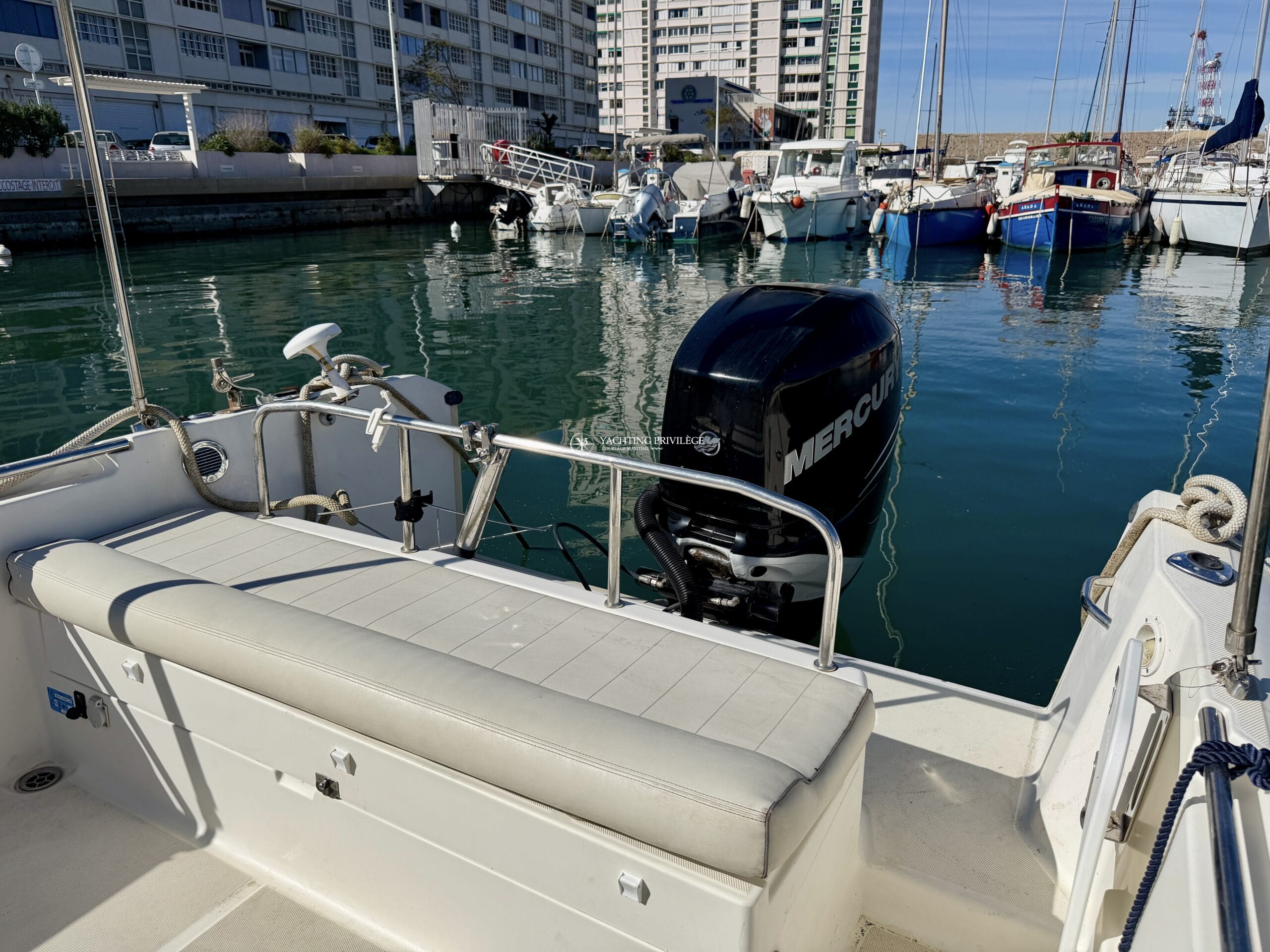 Ce modèle est équipé d’un moteur Mercury 250 CV totalisant 780 heures de navigation.